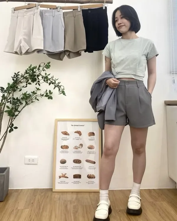 後鬆緊雪紡西裝短褲