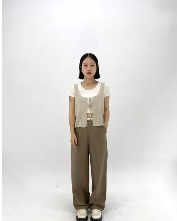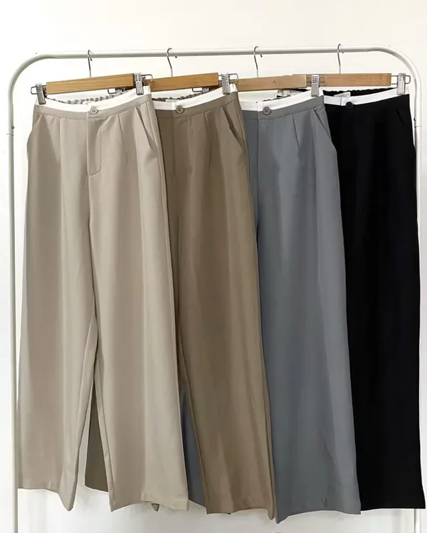 後鬆緊壓線拼色西裝寬褲