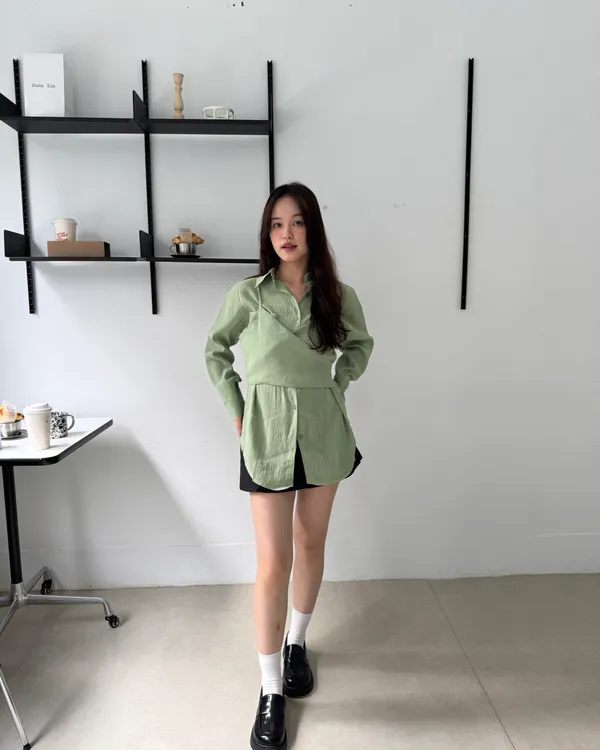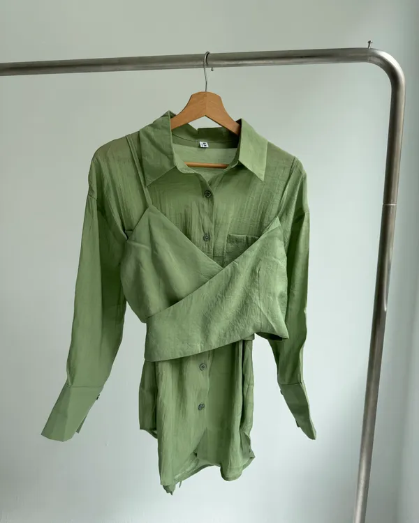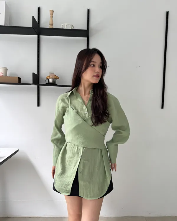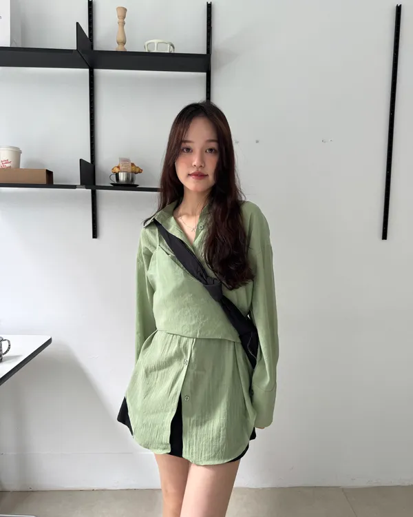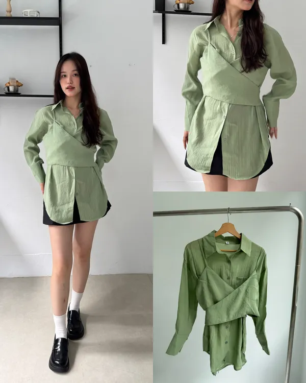 綁帶背心+襯衫兩件式