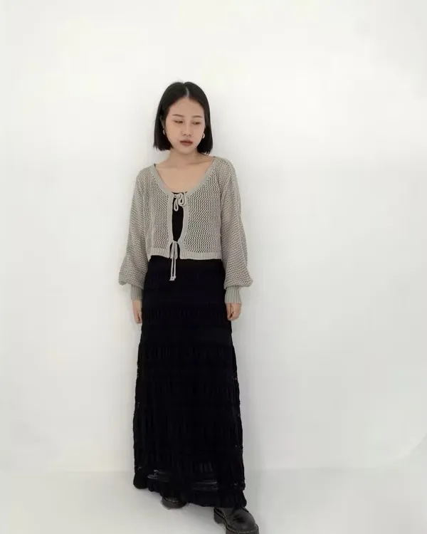3way 雙綁帶洞洞針織上衣