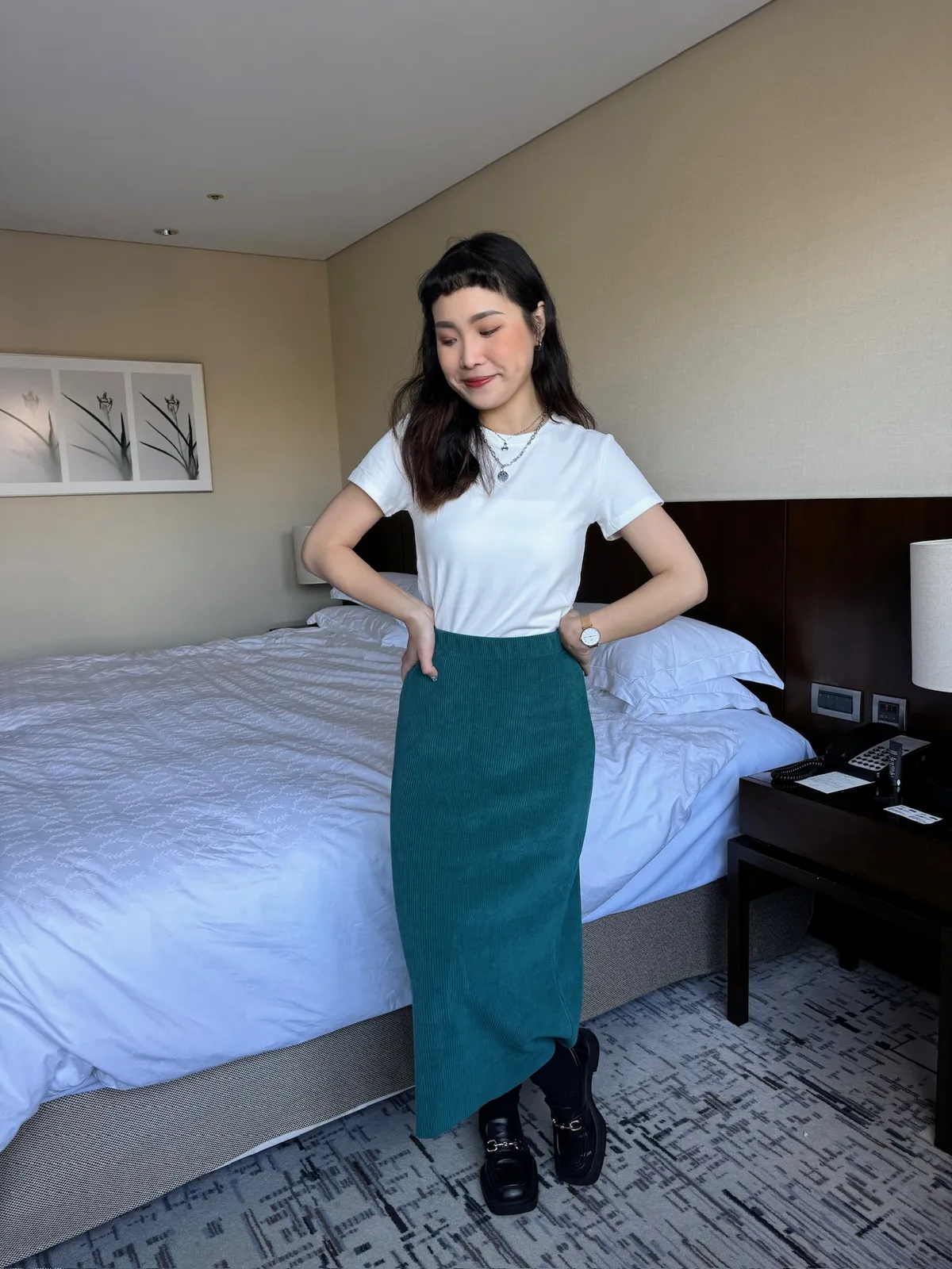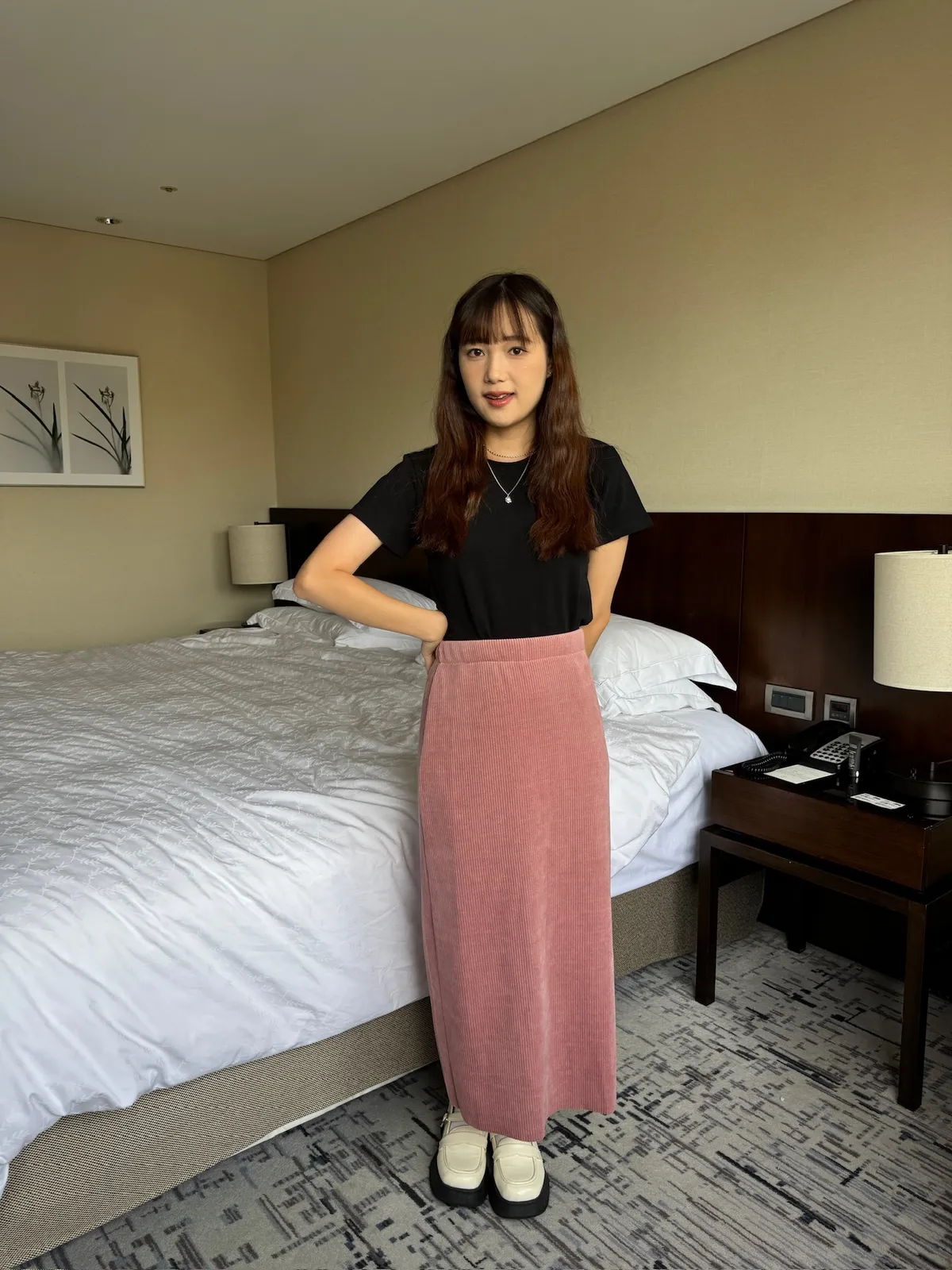 ・外層小磨毛布料,內裏滑料 ・我們家難得上這麼乖的版型 ・單穿、內搭都適合