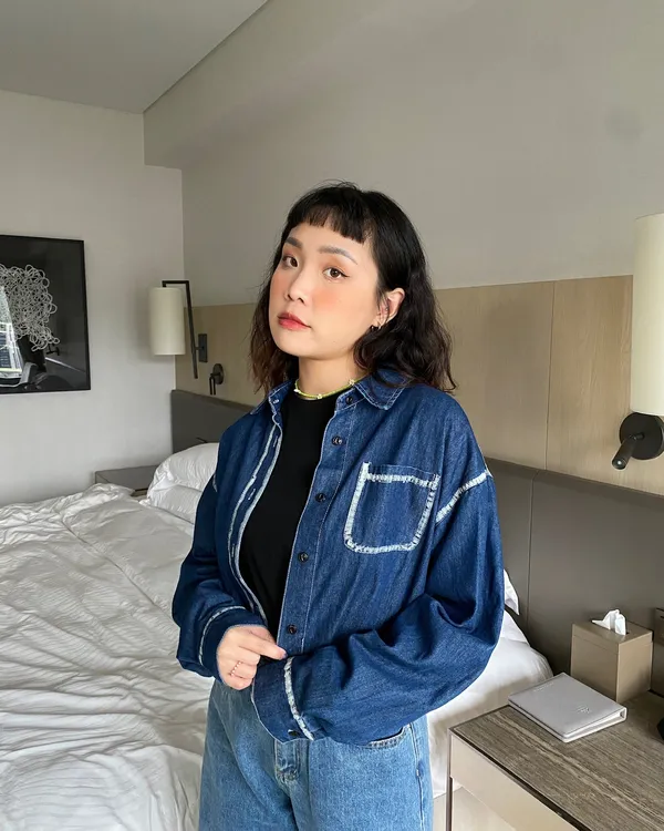 時髦必收!手刷邊原色牛仔襯衫