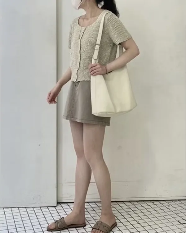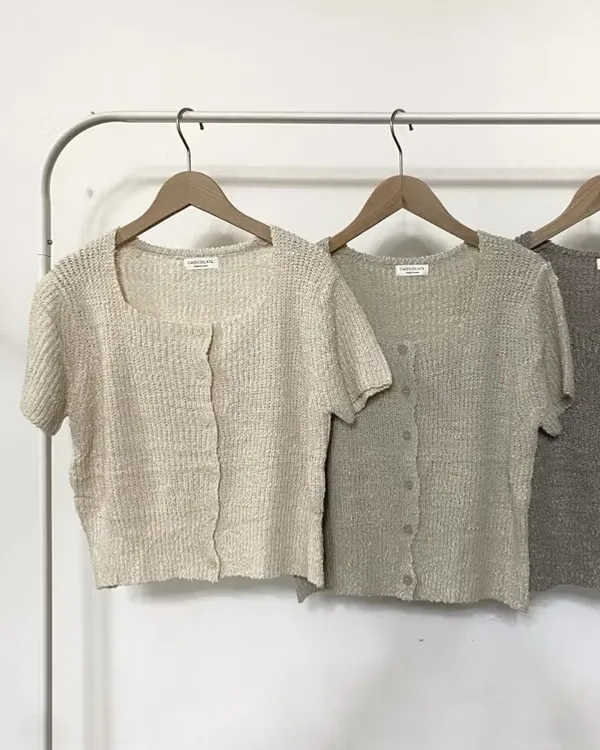 方領排釦短袖針織上衣