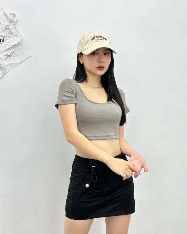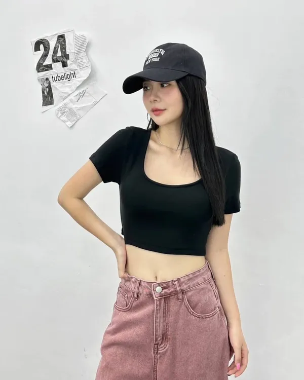 大圓領莫代爾短版Bra tee