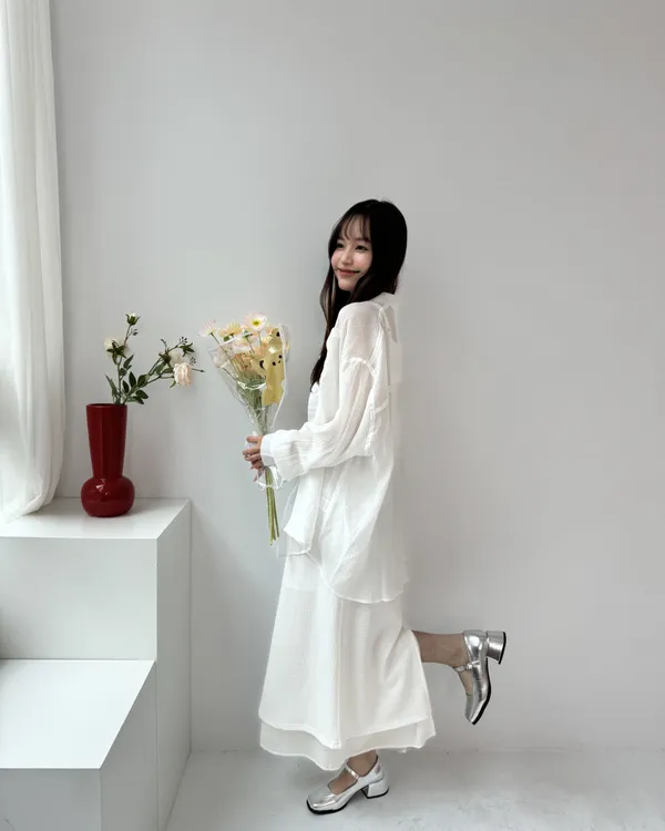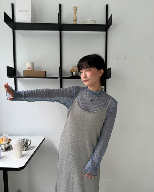 立體泡泡紗透膚上衣 2colors