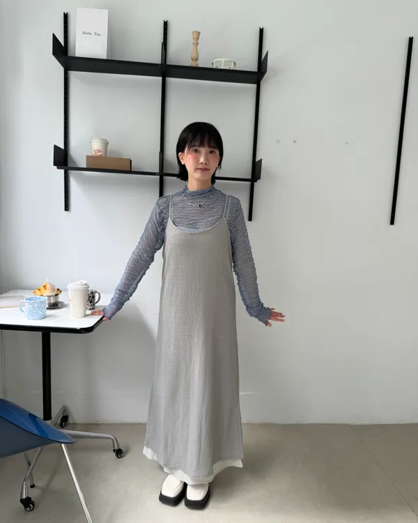 日系假兩件雙層吊帶洋裝 3colors