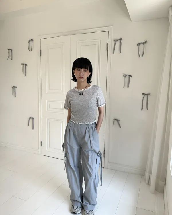 假兩件木耳邊短Tee