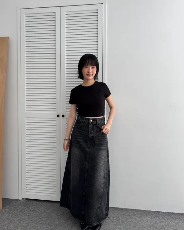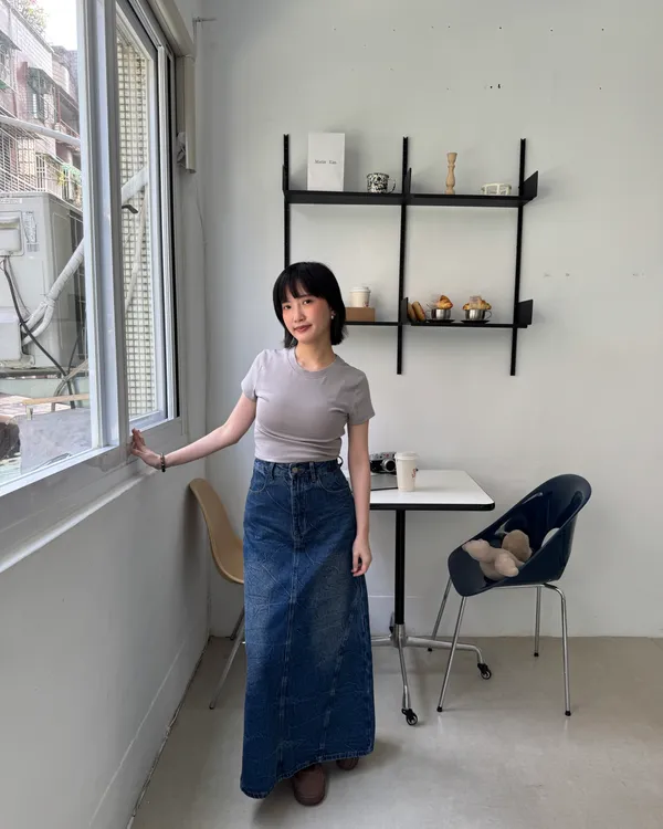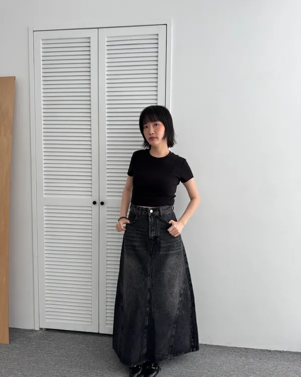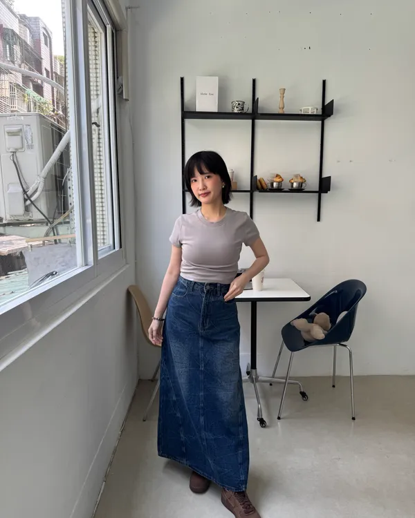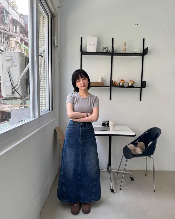復古感A字牛仔長裙 2colors