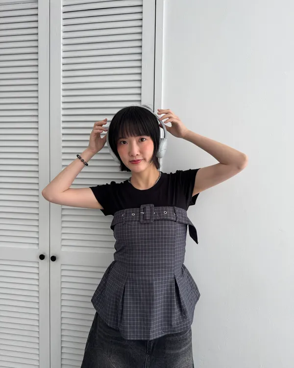 格紋寬皮帶造型防滑平口背心 3colors