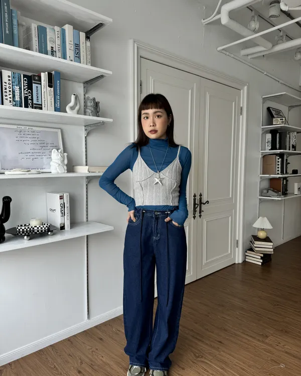梨形大推!調節釦原色牛仔寬褲