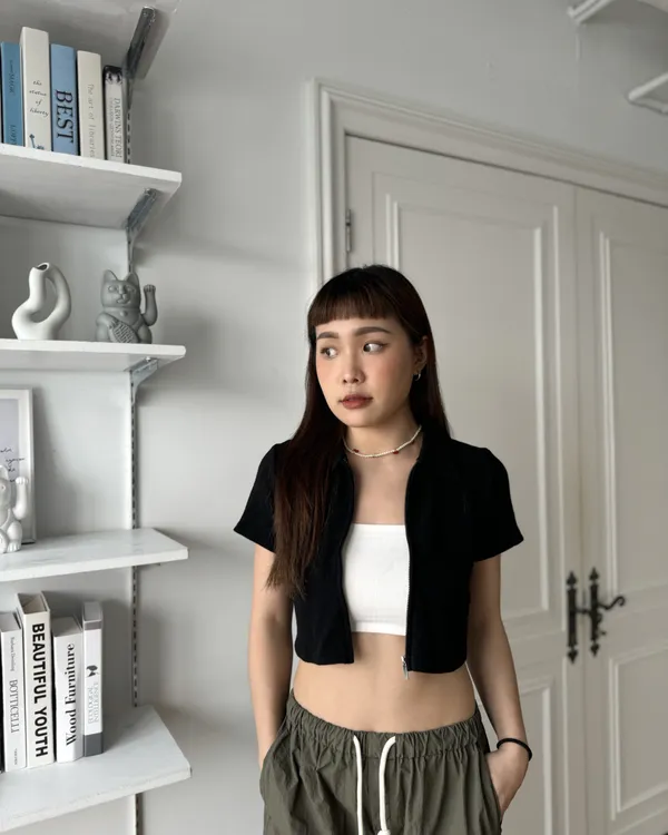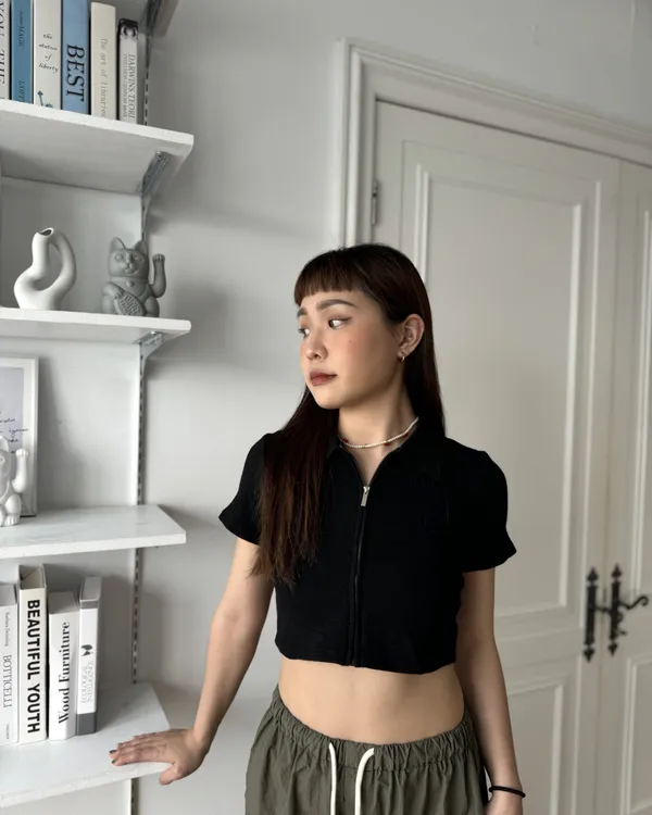 拉鍊翻領短版上衣 2colors