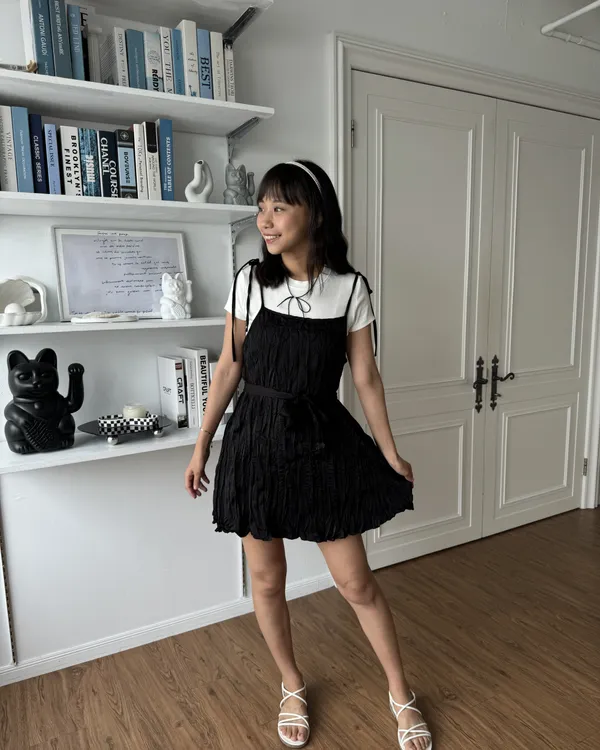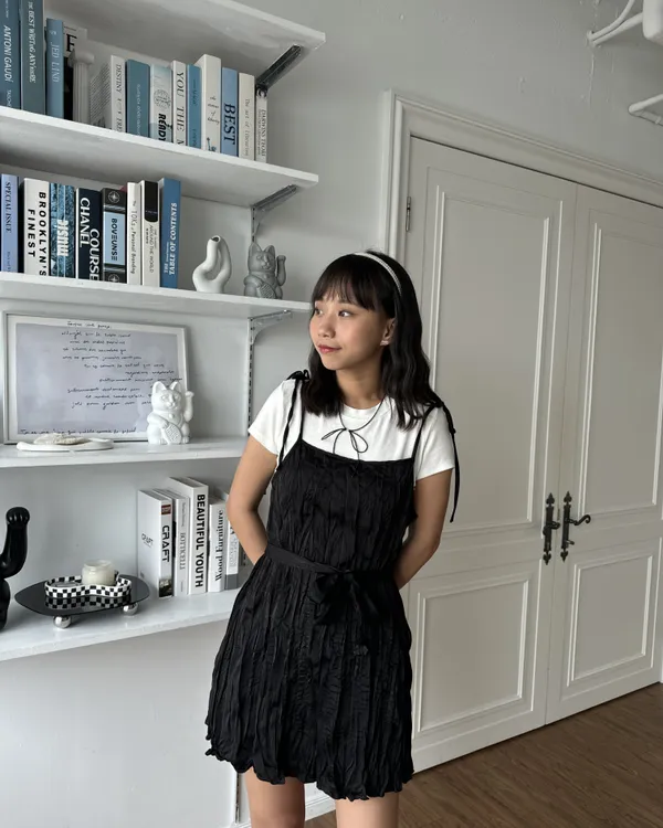 私心大推!皺皺綁帶短洋裝(附粗綁帶)3colors