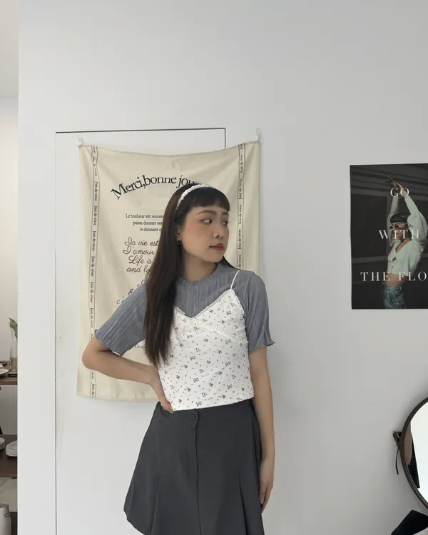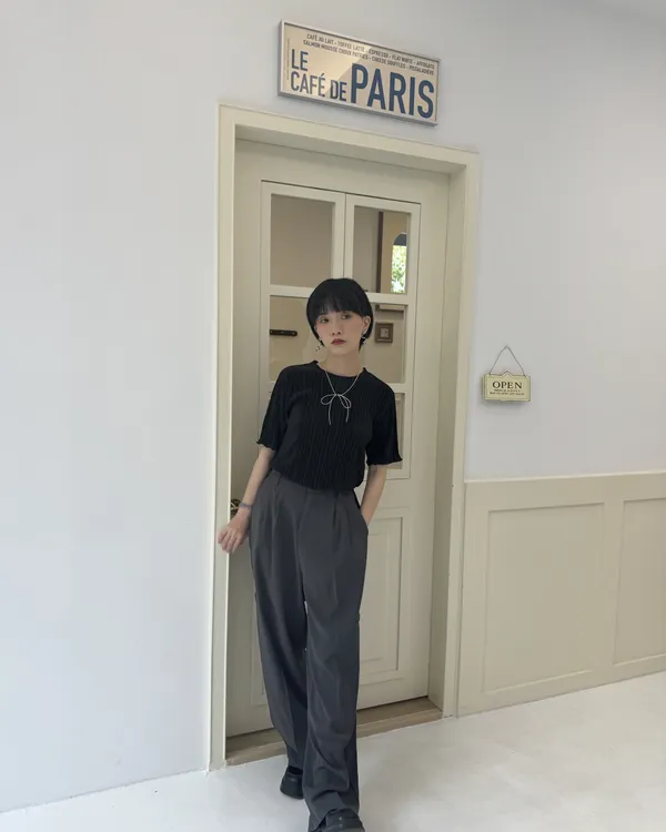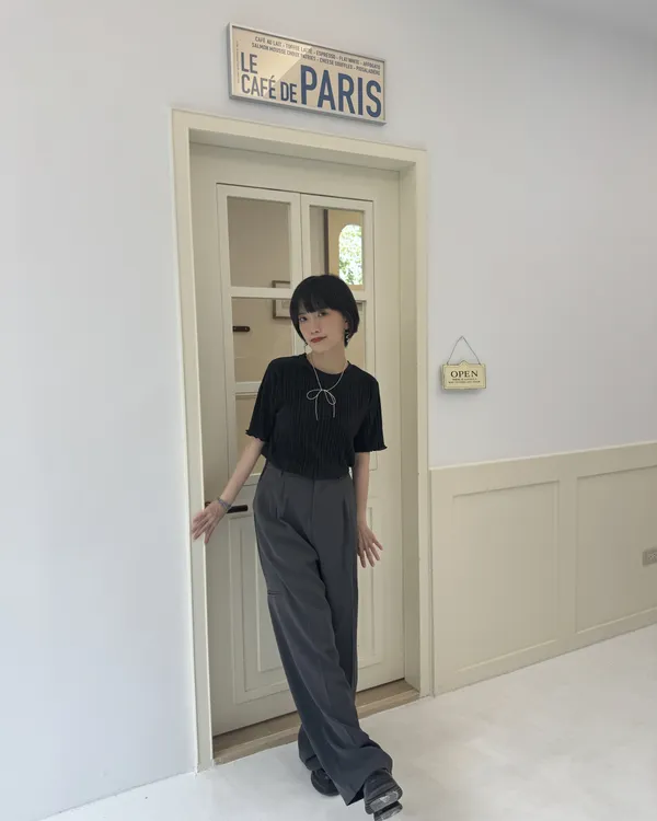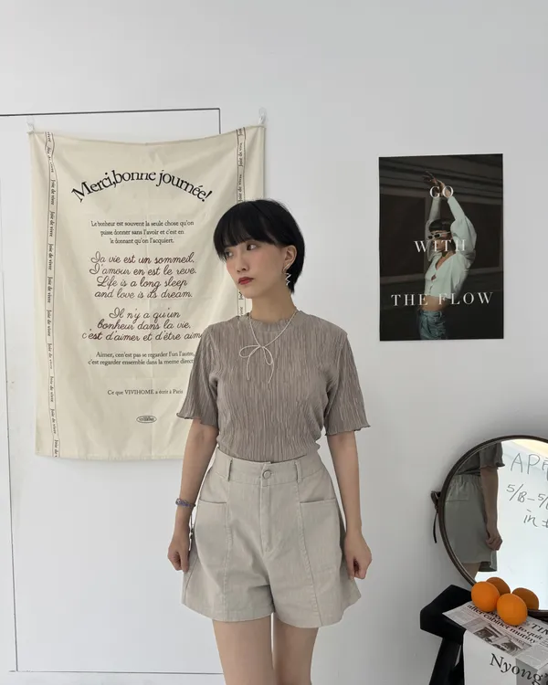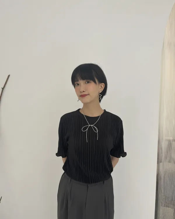 光澤感壓摺上衣 4colors