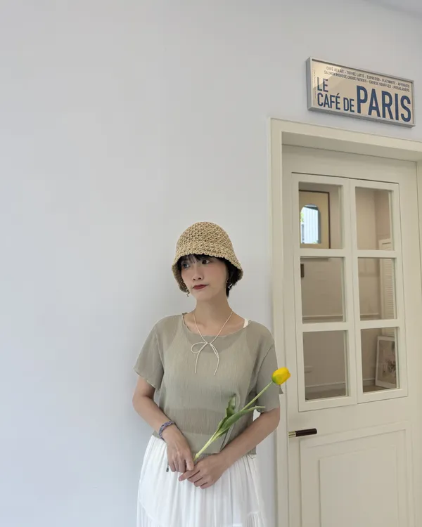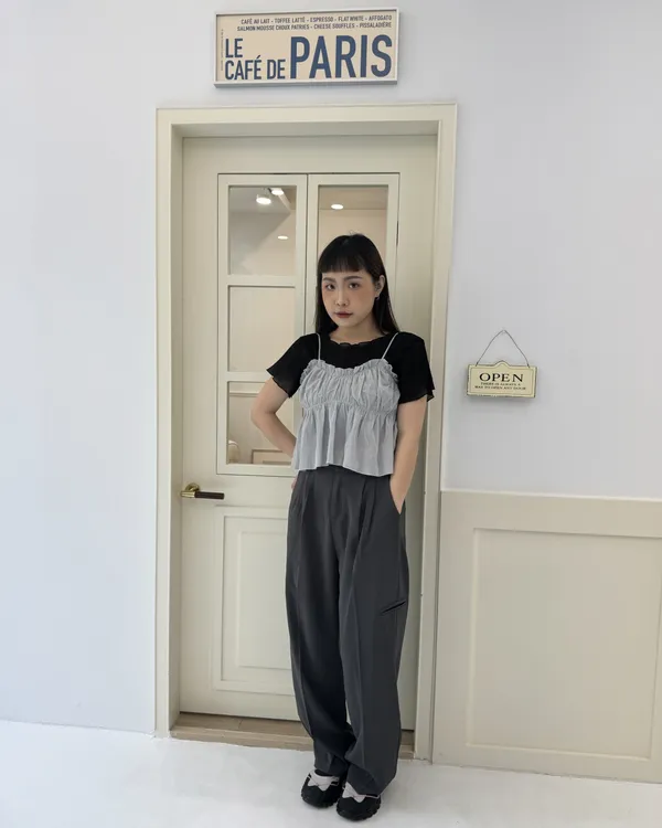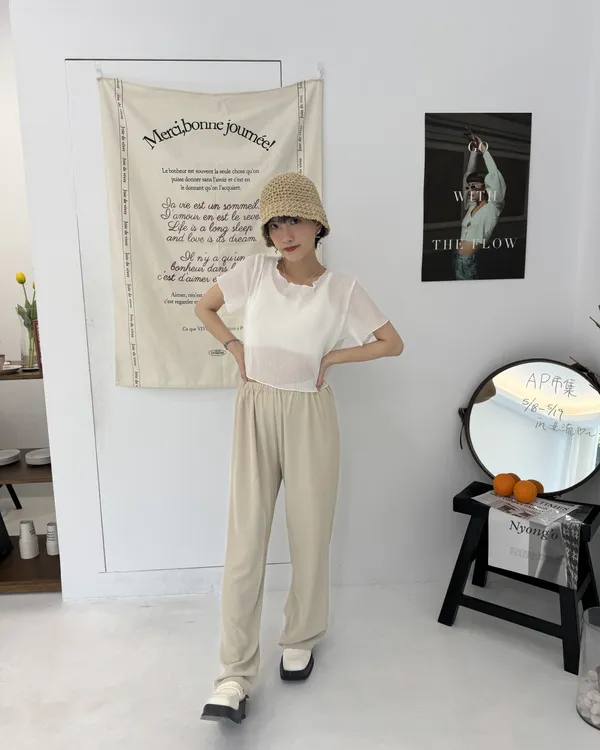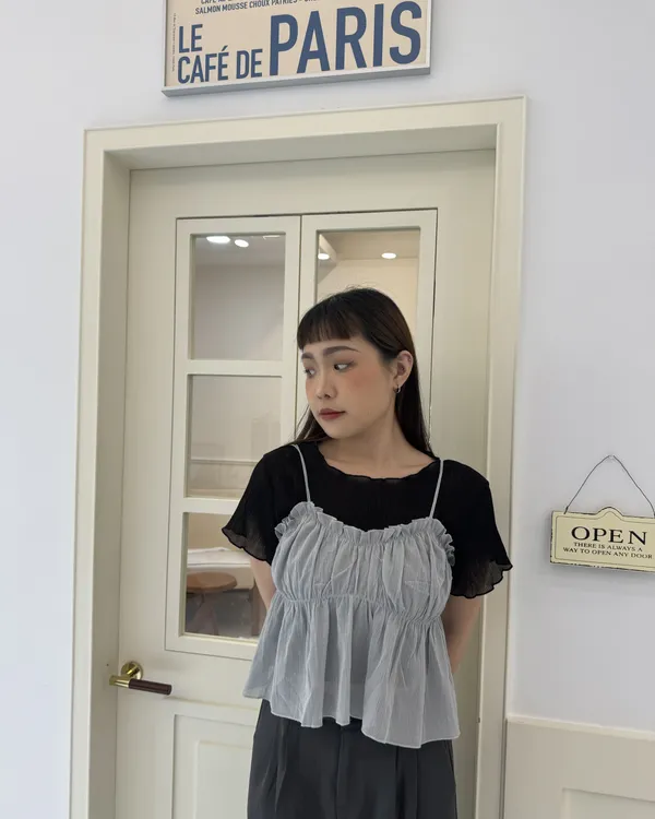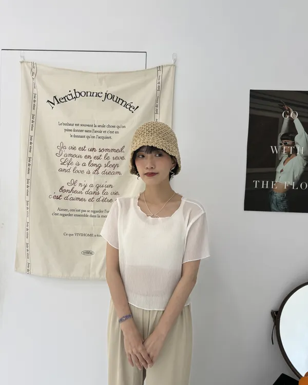波紋捲邊微透上衣 5colors