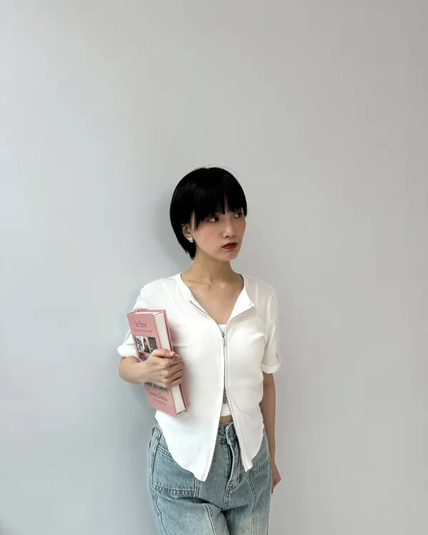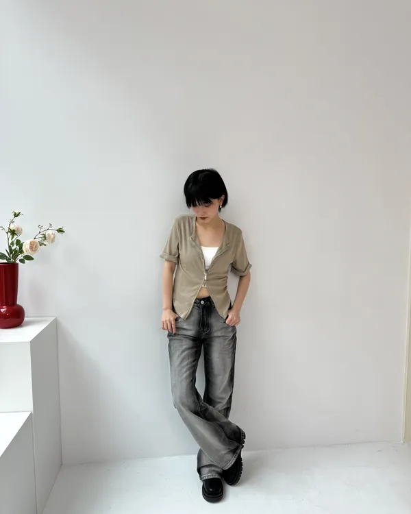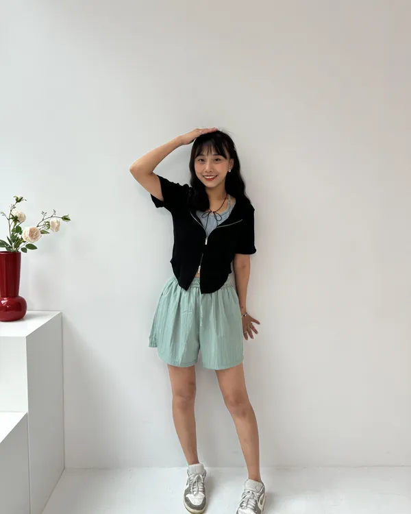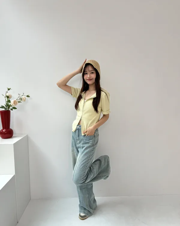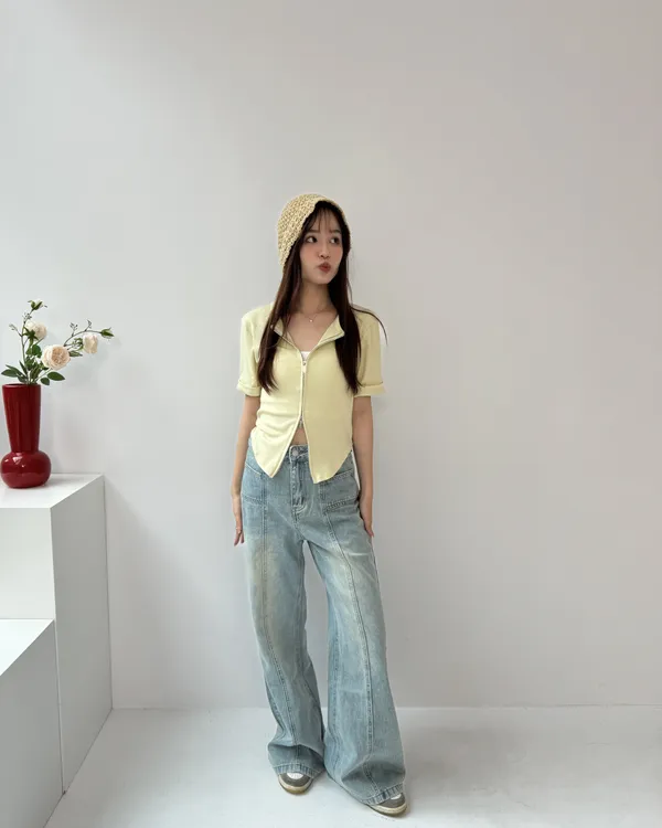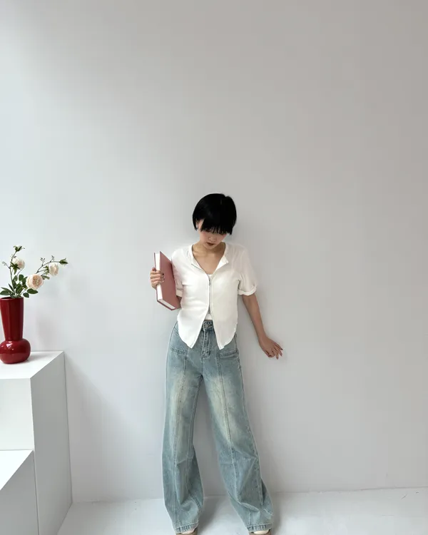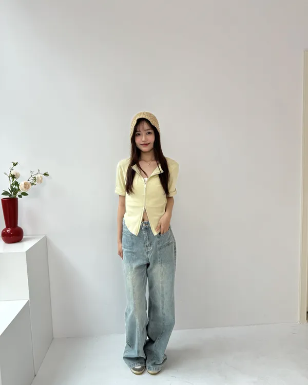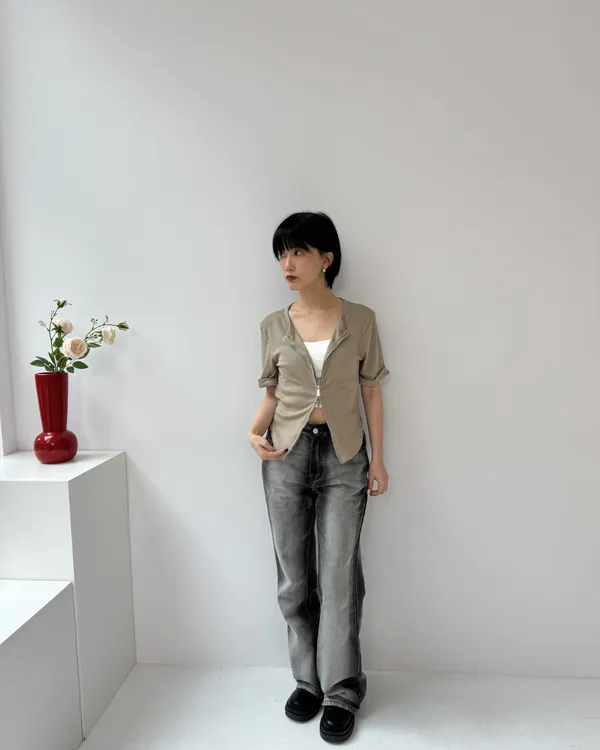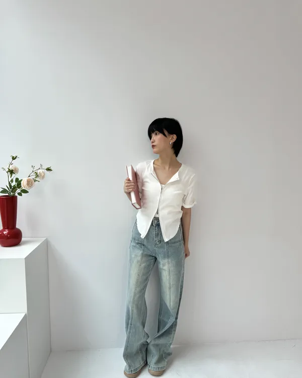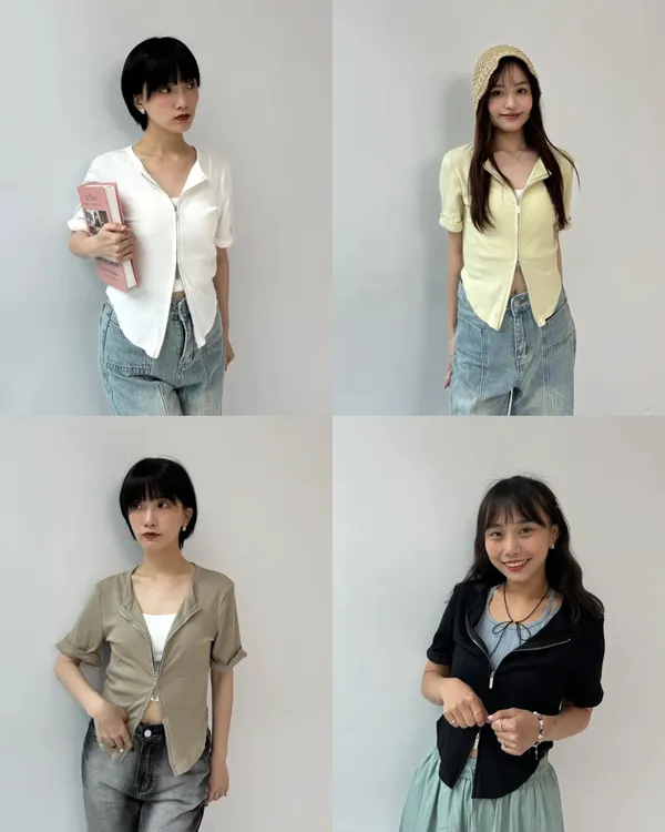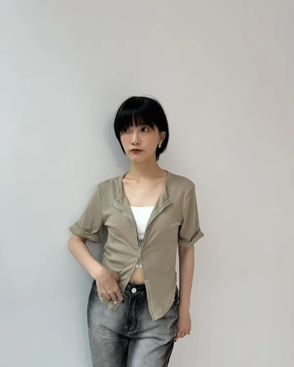 雙拉鍊下擺圓弧短袖上衣 4colors
