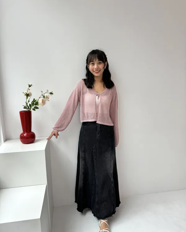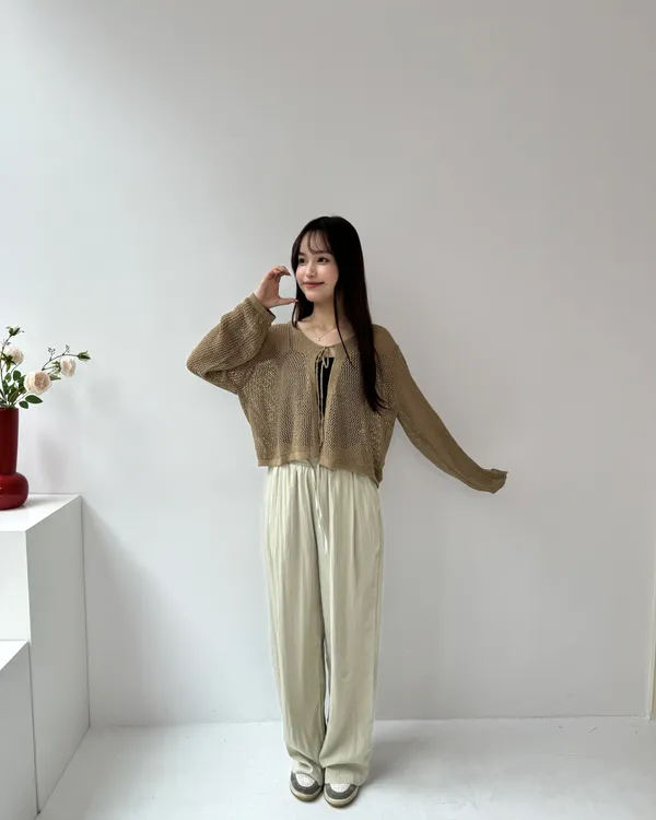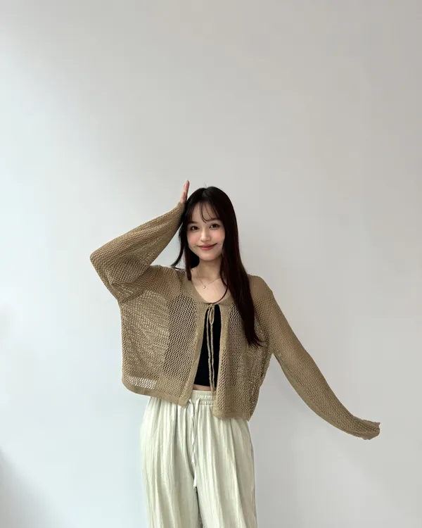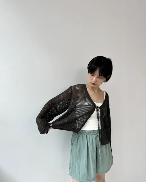 綁帶洞洞罩衫 4colors
