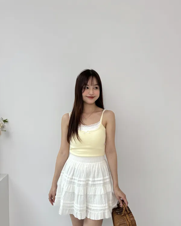假兩件蕾絲邊蝴蝶結Bra top 4colors