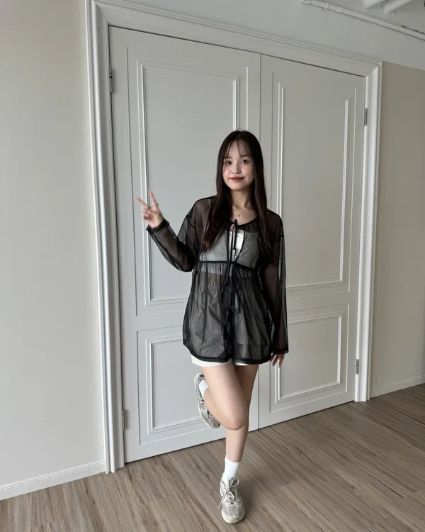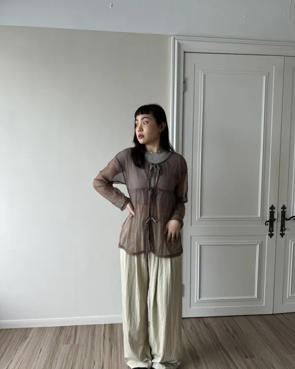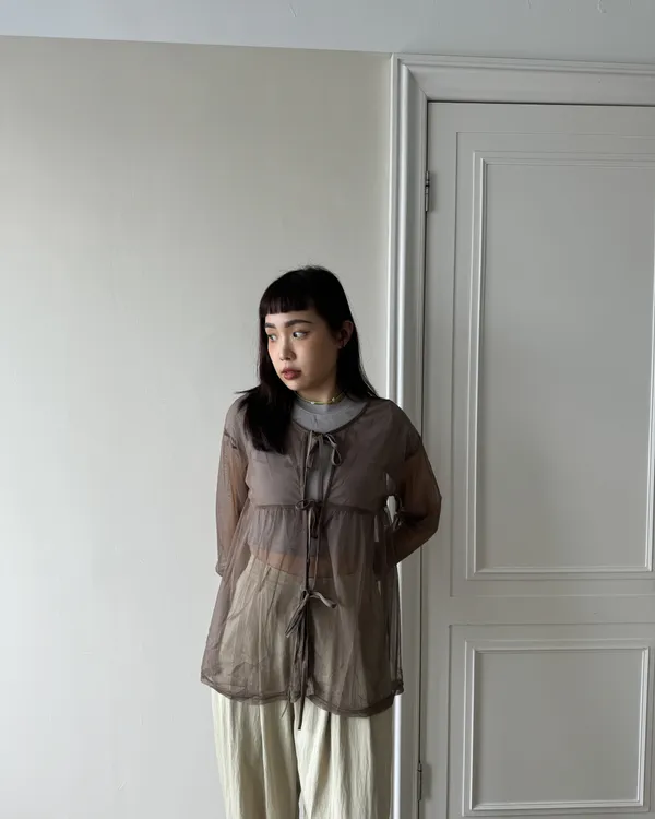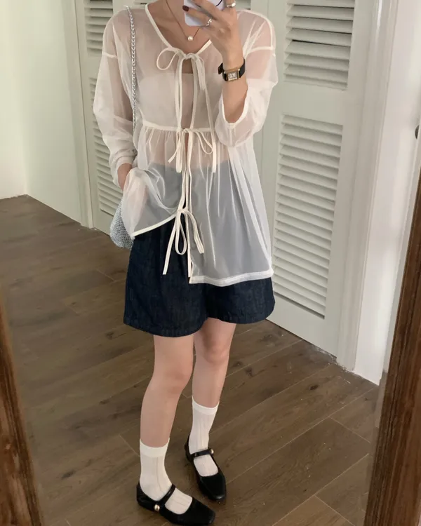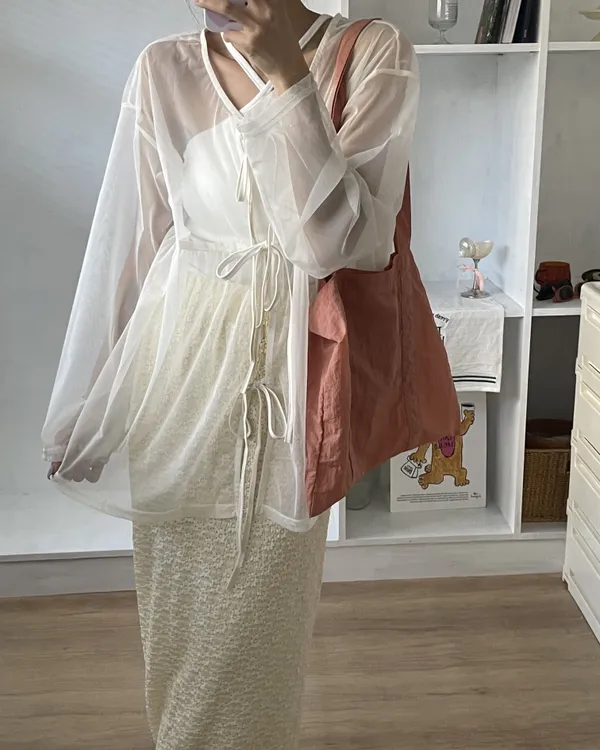 日系寬鬆感綁帶透膚罩衫 3colors