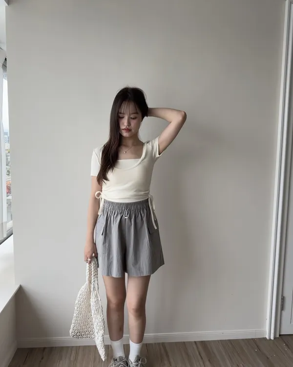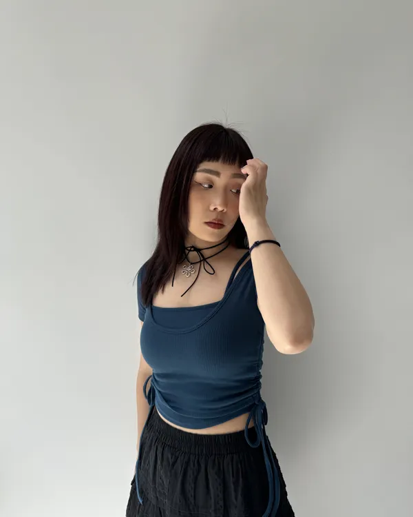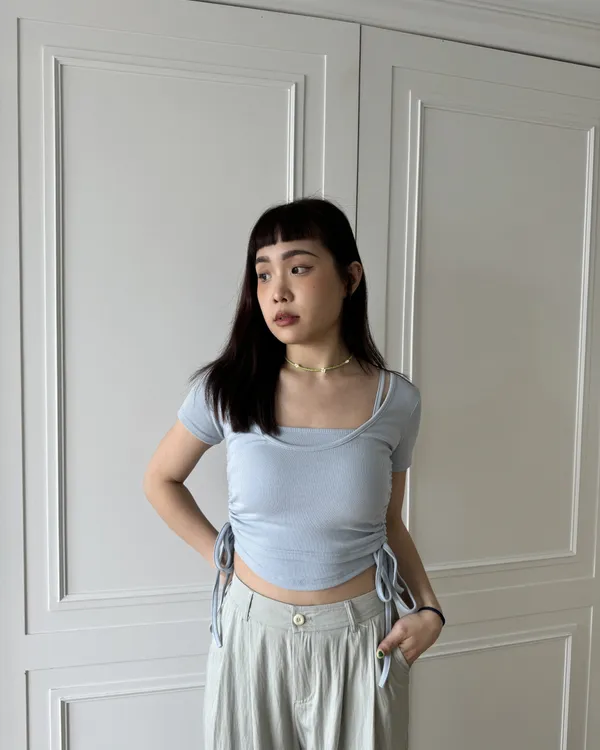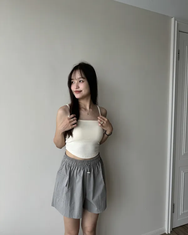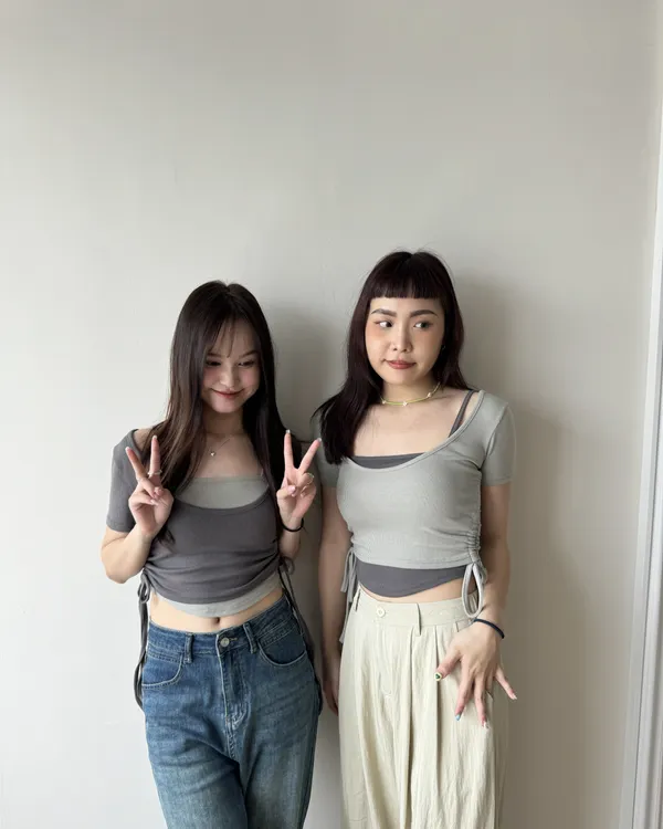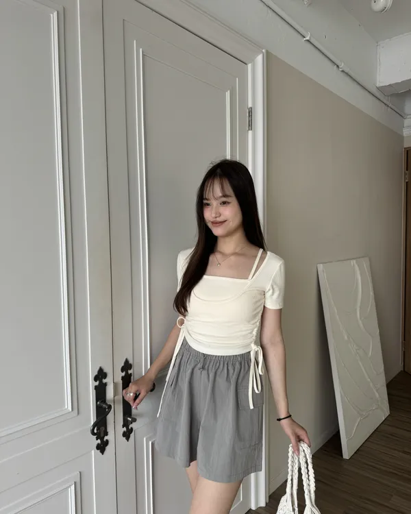 下擺圓弧Bra Top+抽繩收腰兩件式Set 6colors