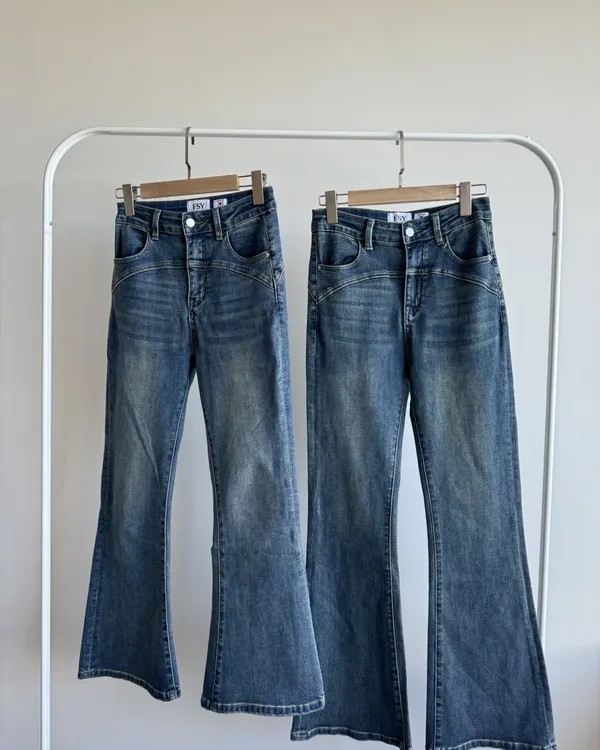 身高友善!水洗刷色彈力喇叭牛仔褲 2colors