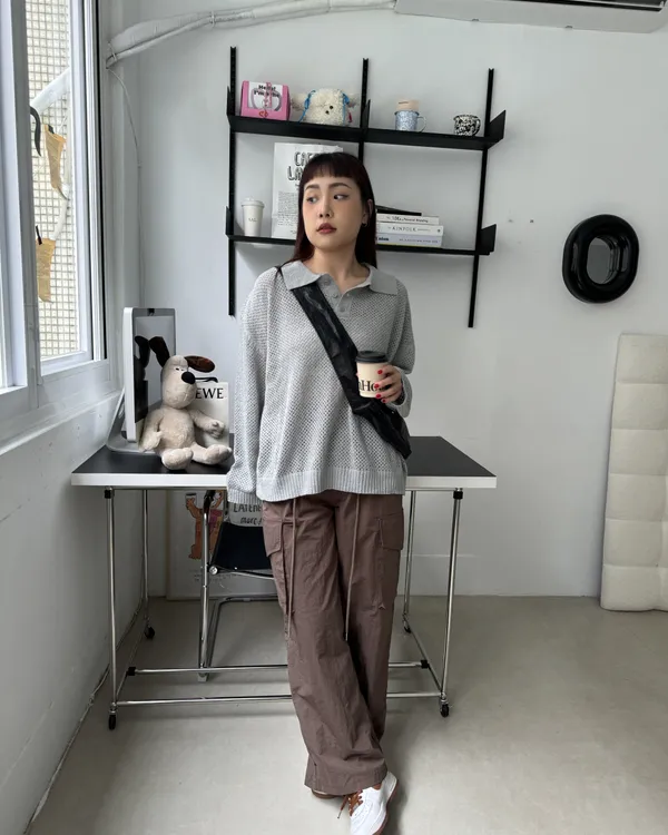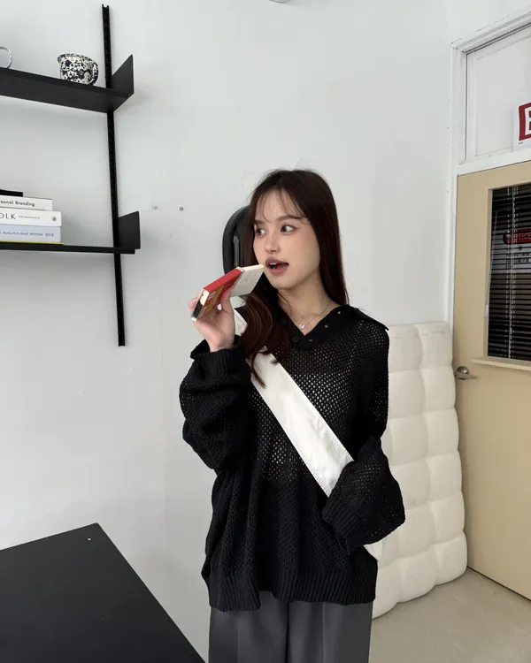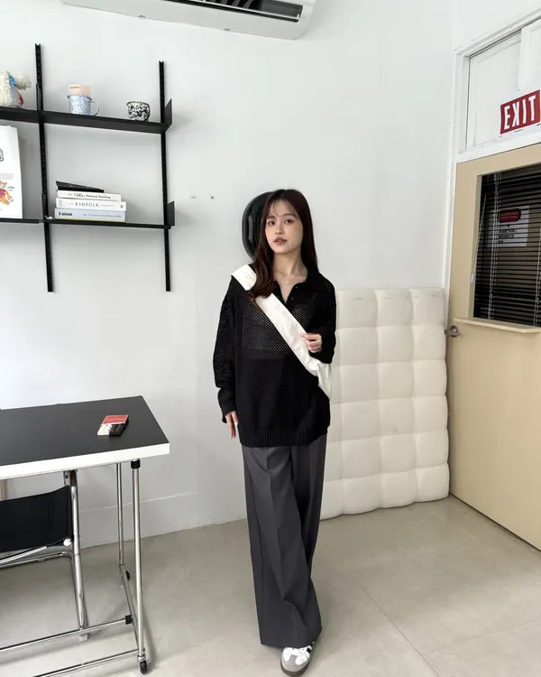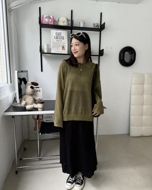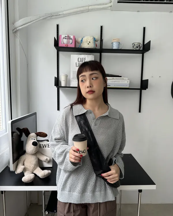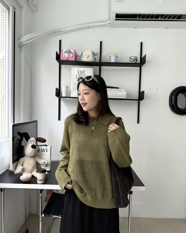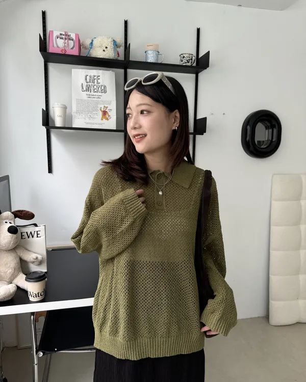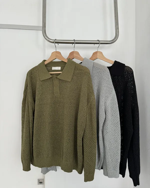 POLO翻領挺料洞洞針織上衣 3colors