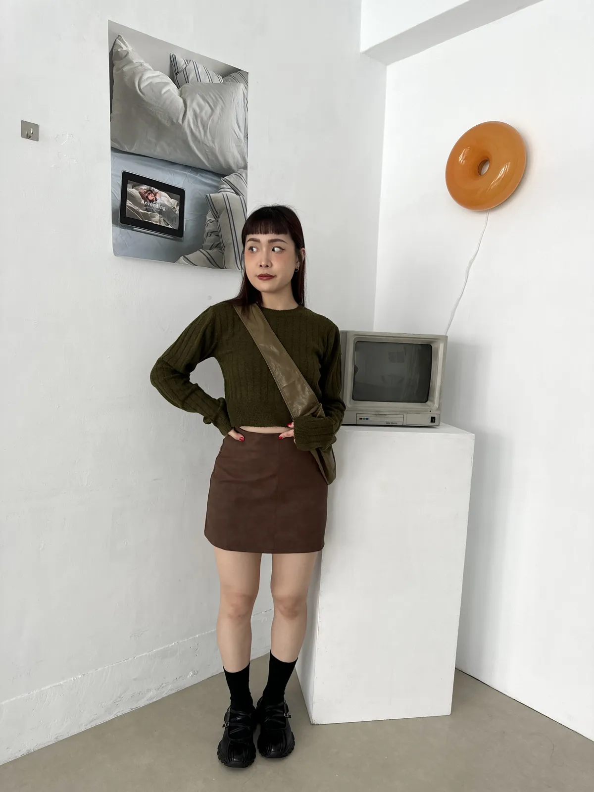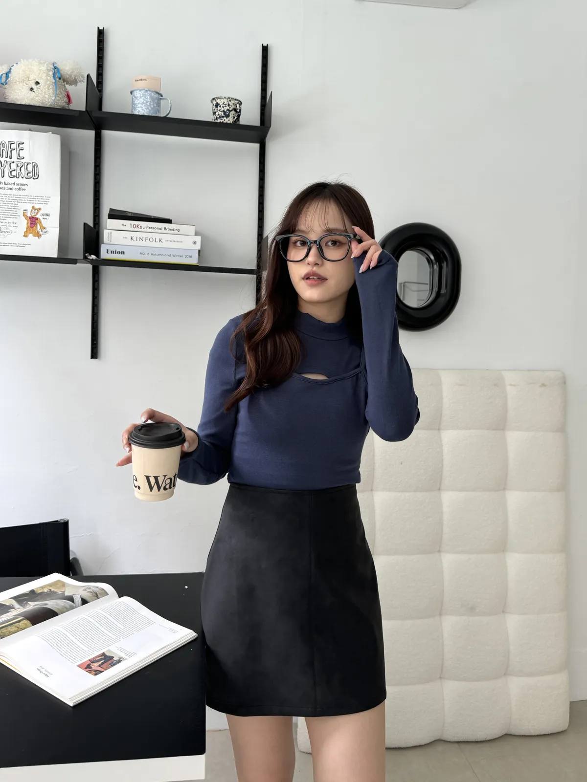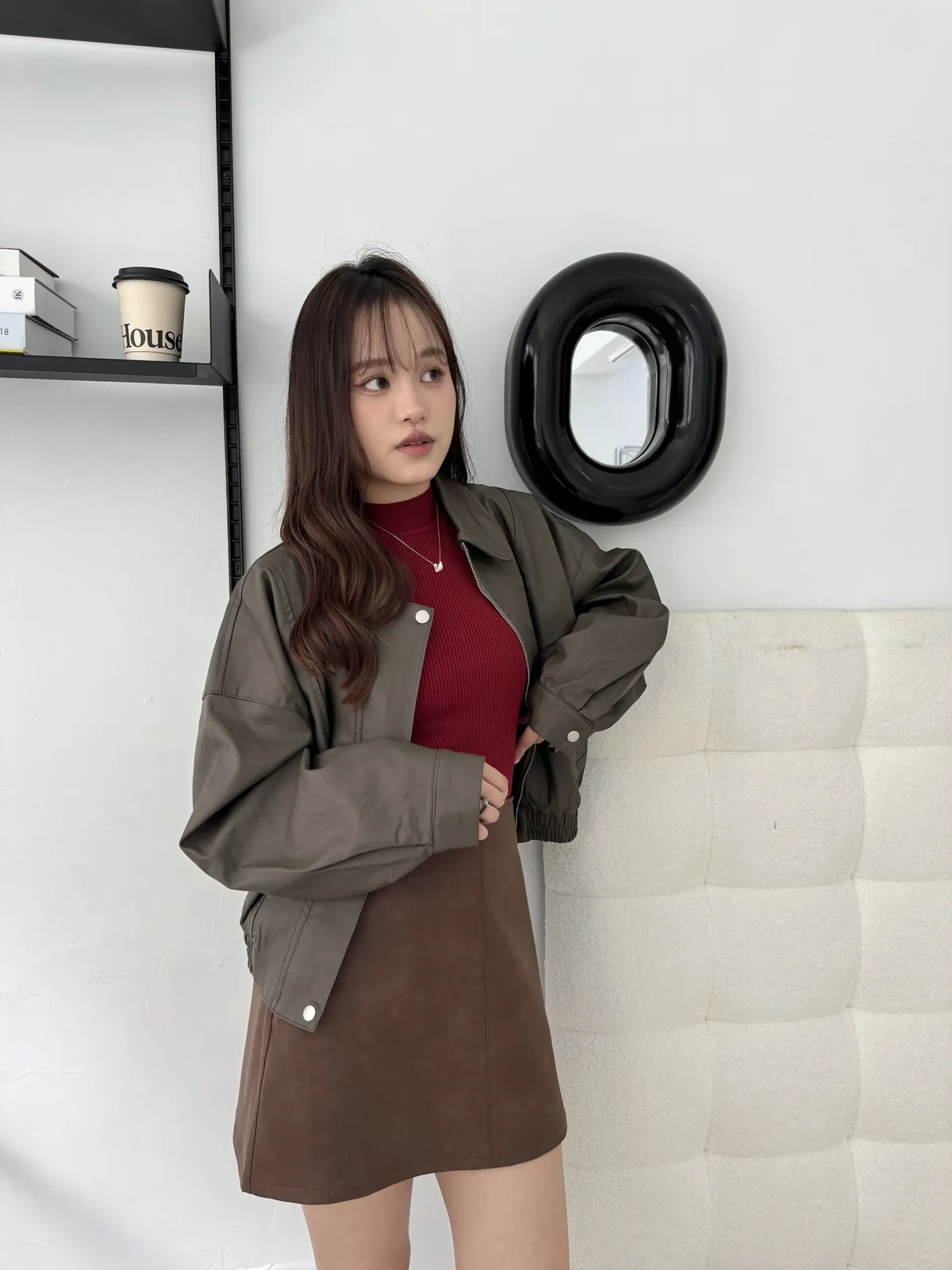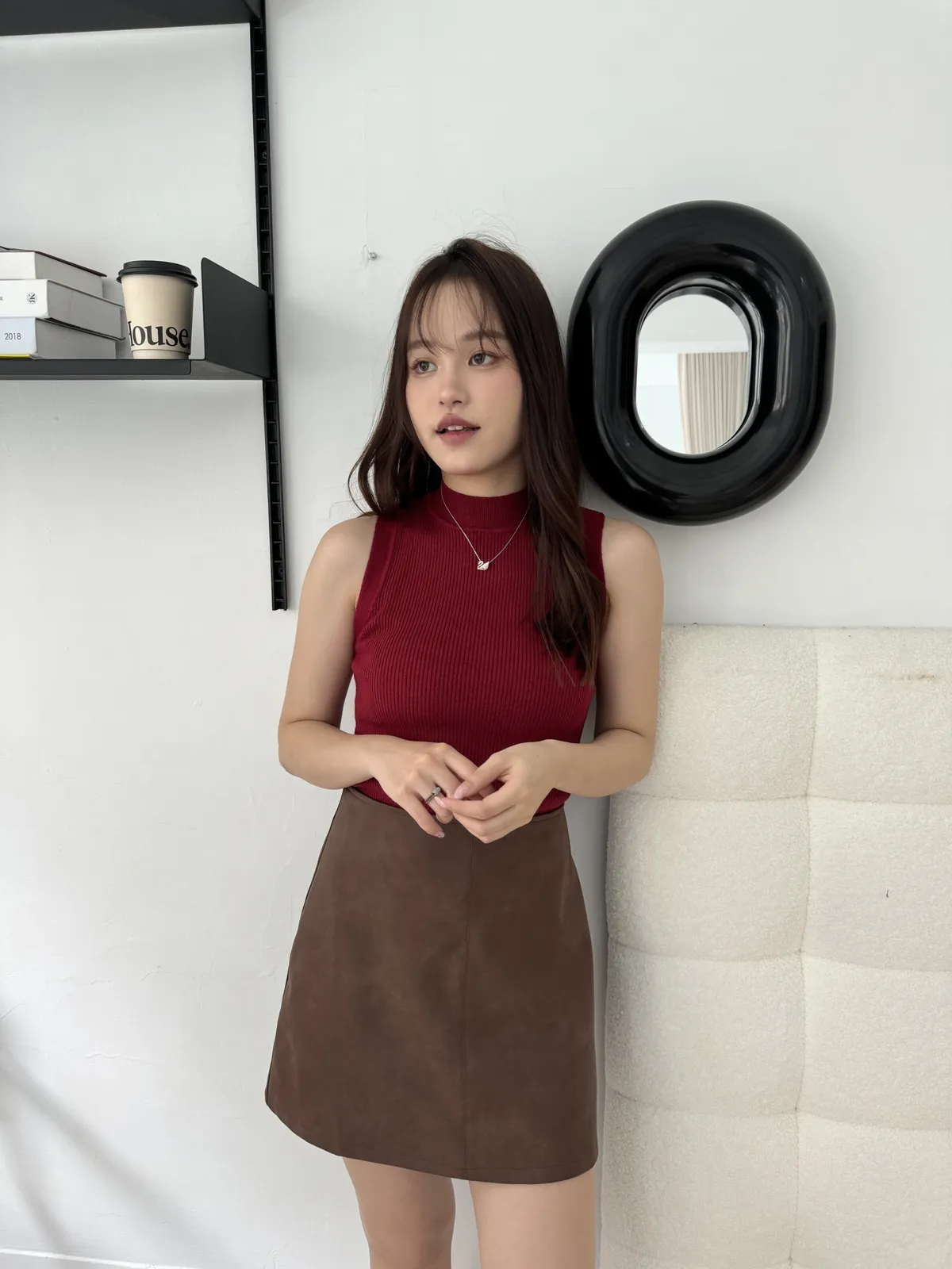 霧面質感A字皮短裙 3colors