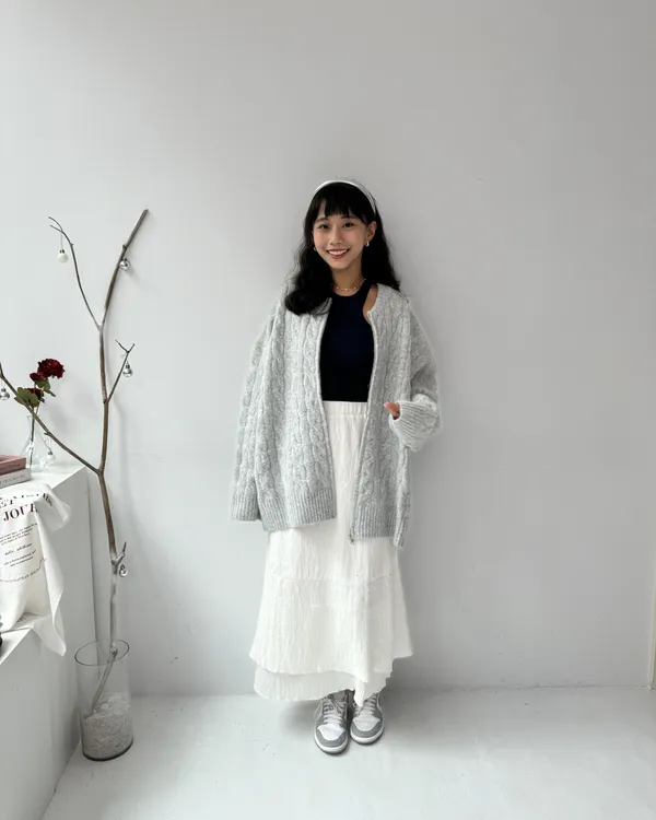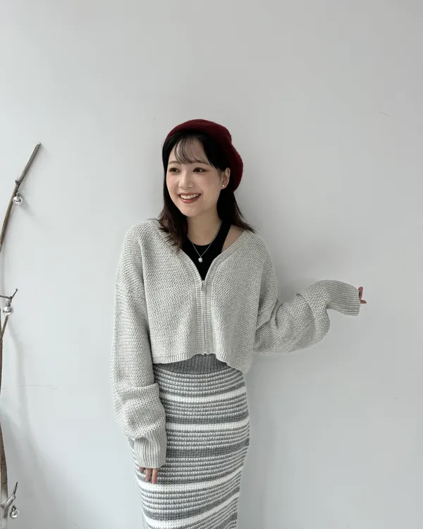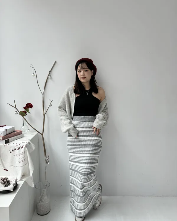 厚磅條紋後開衩針織長裙 2colors