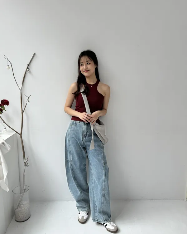 時髦車線繭型牛仔寬褲