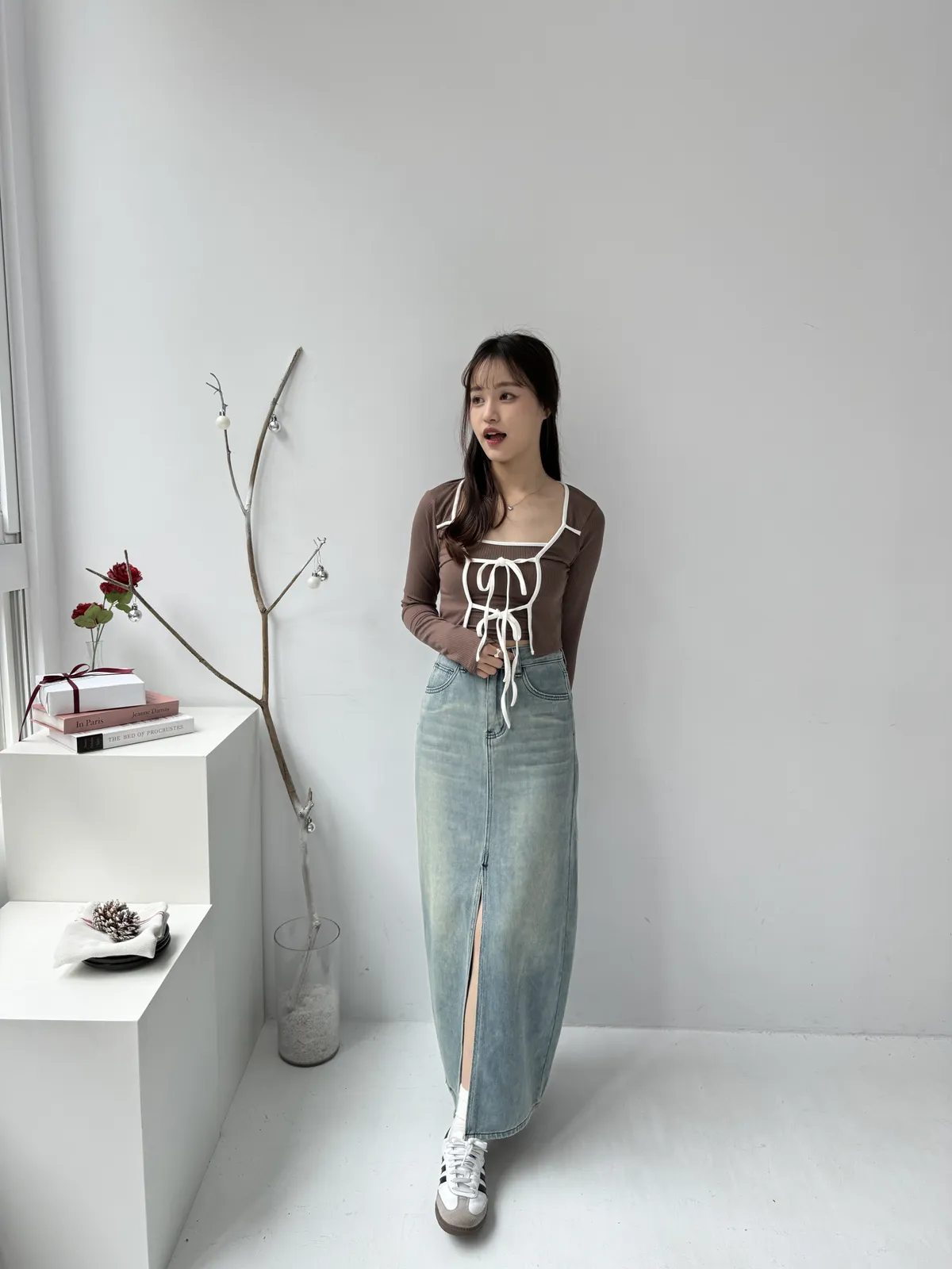 本期必收!極顯瘦前開衩牛仔長裙 3colors