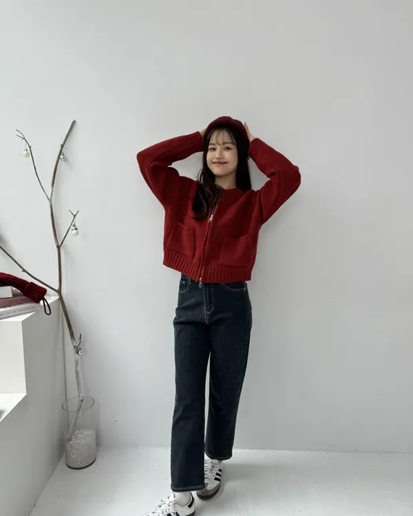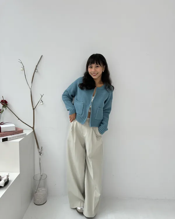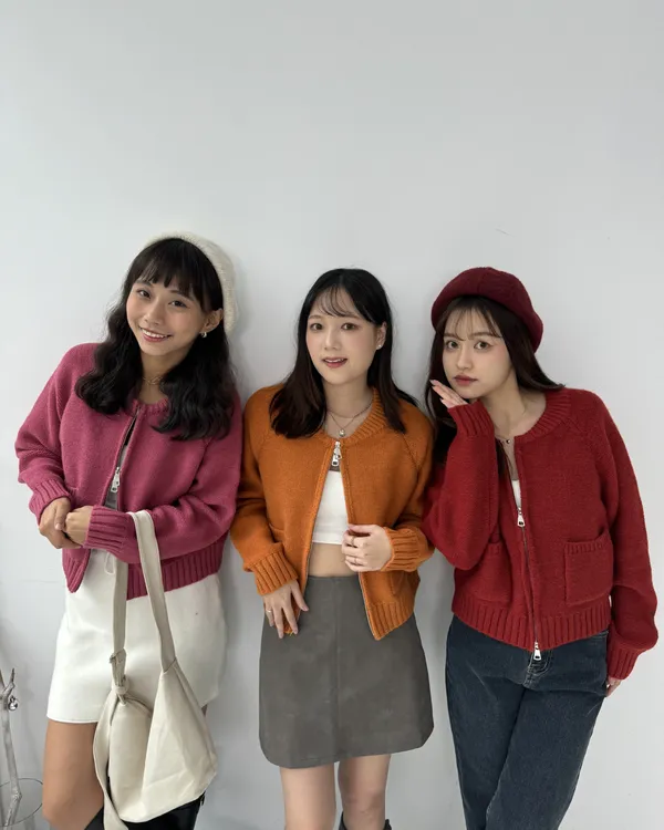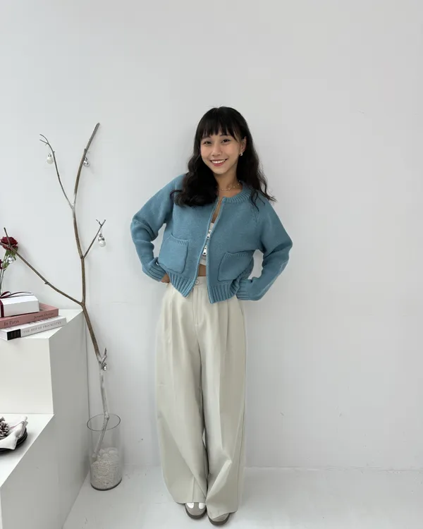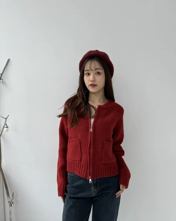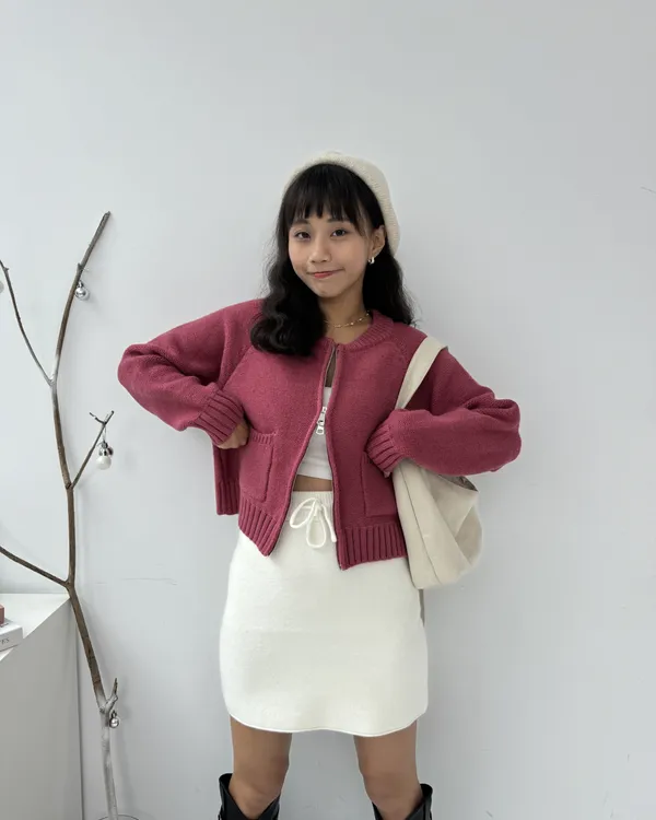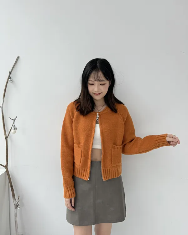 繽紛雙拉鍊短版口袋針織毛衣