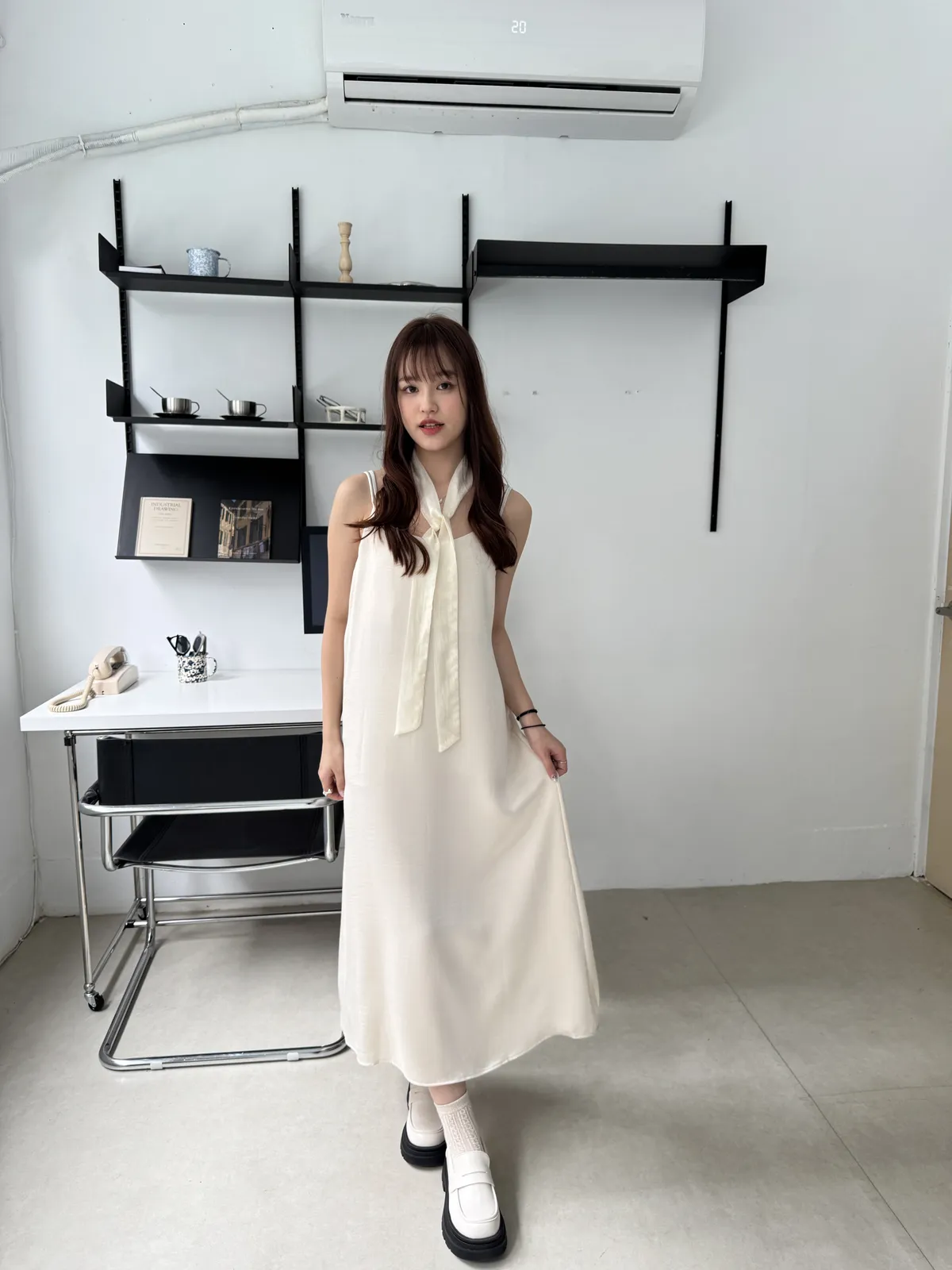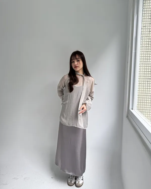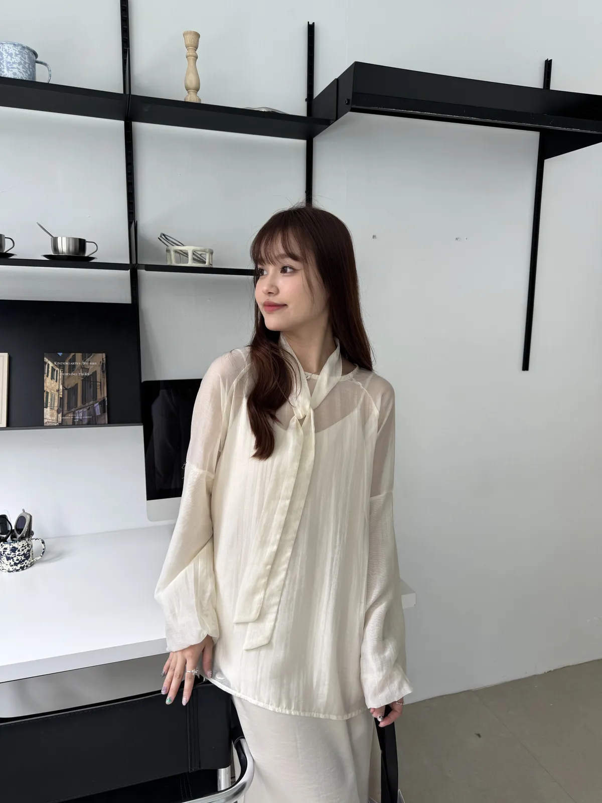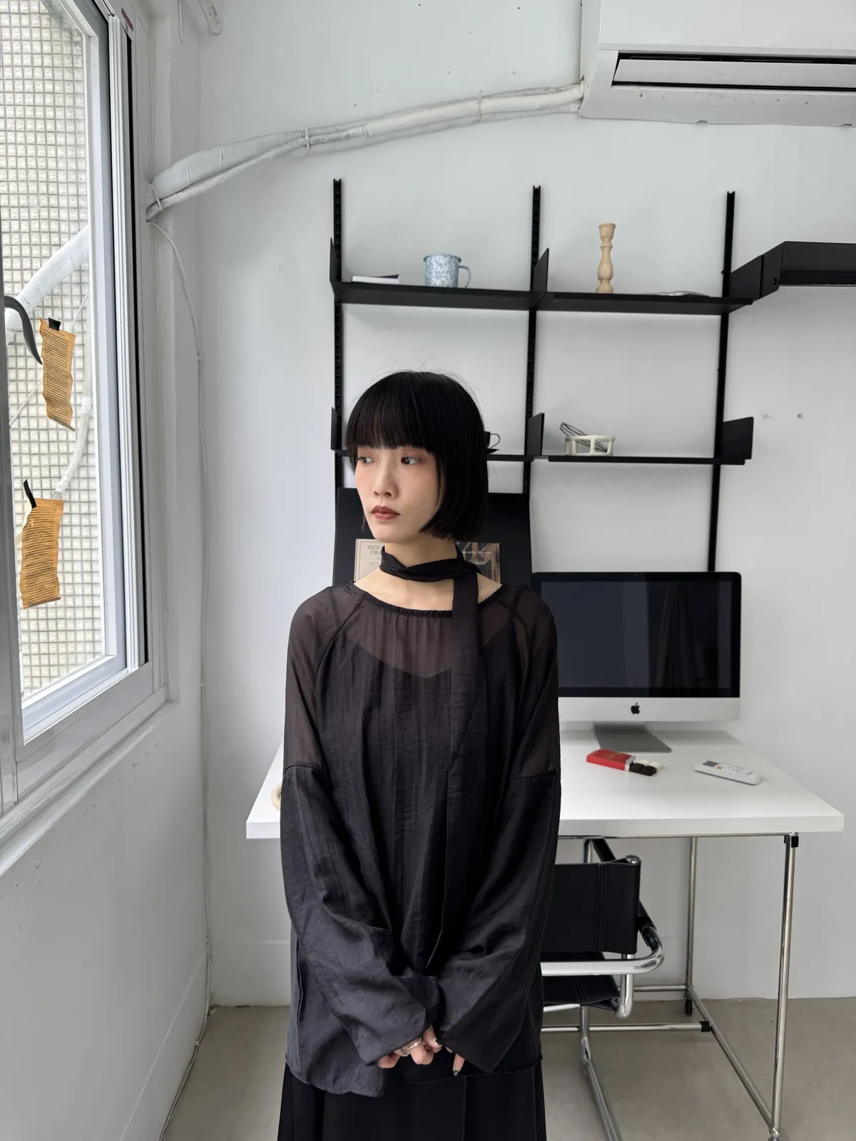 仙女系緞面洋裝+澎袖透膚上衣Set組(附綁帶) 4colors