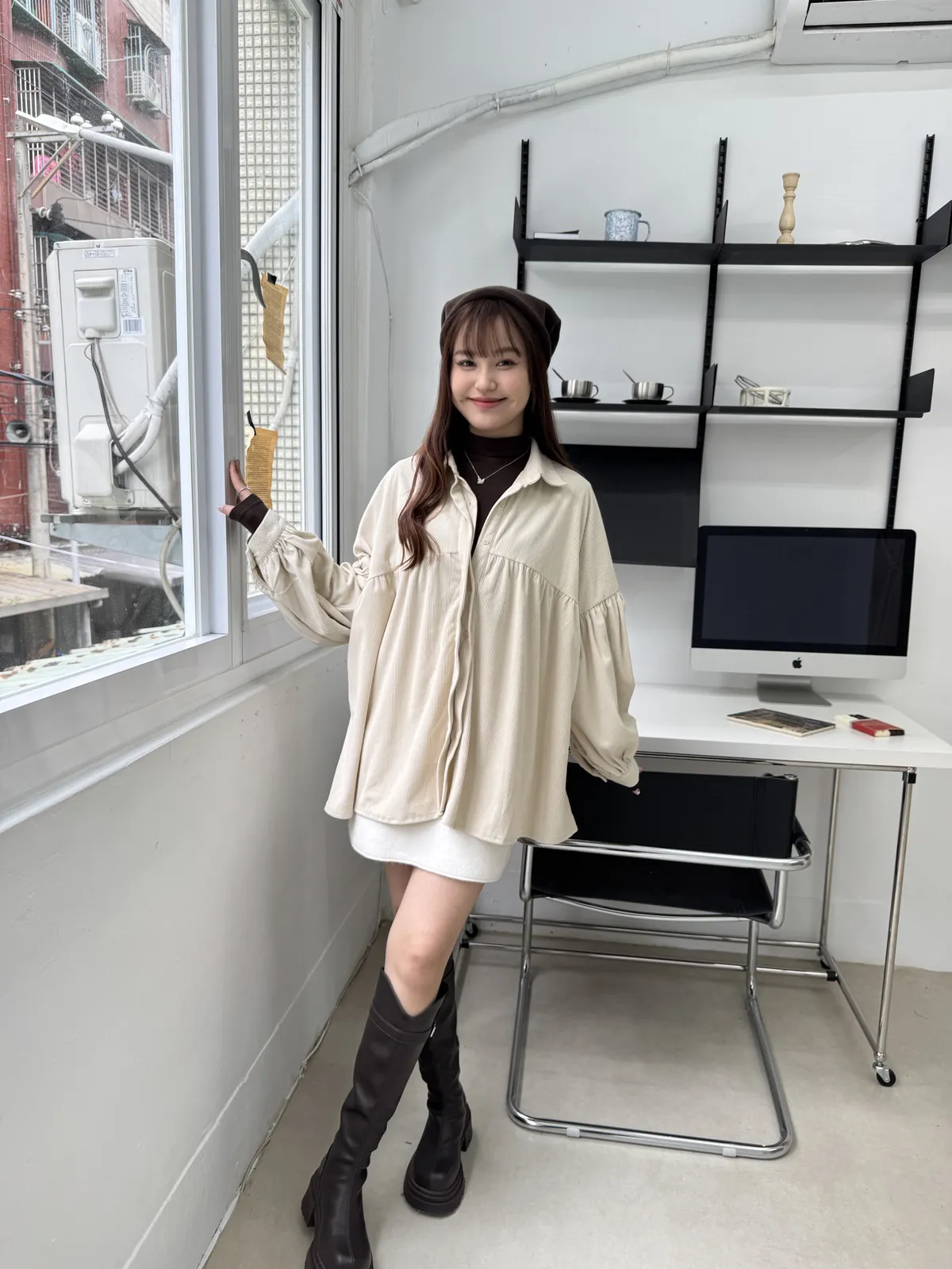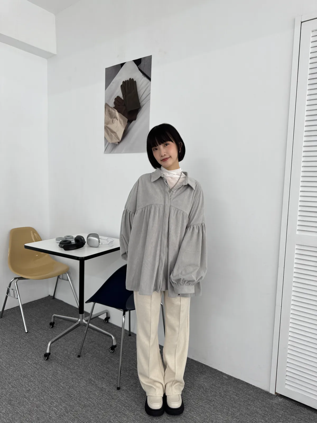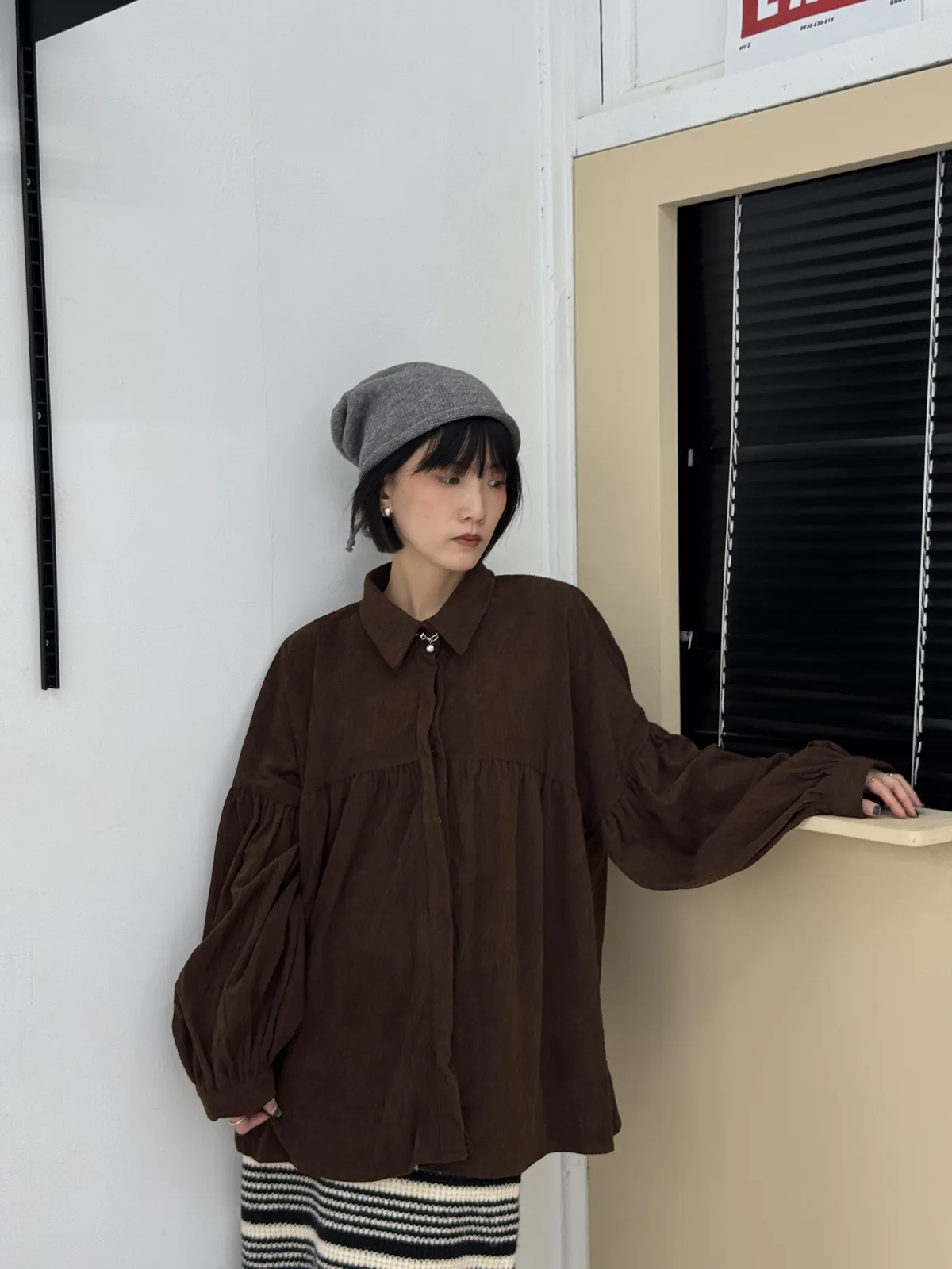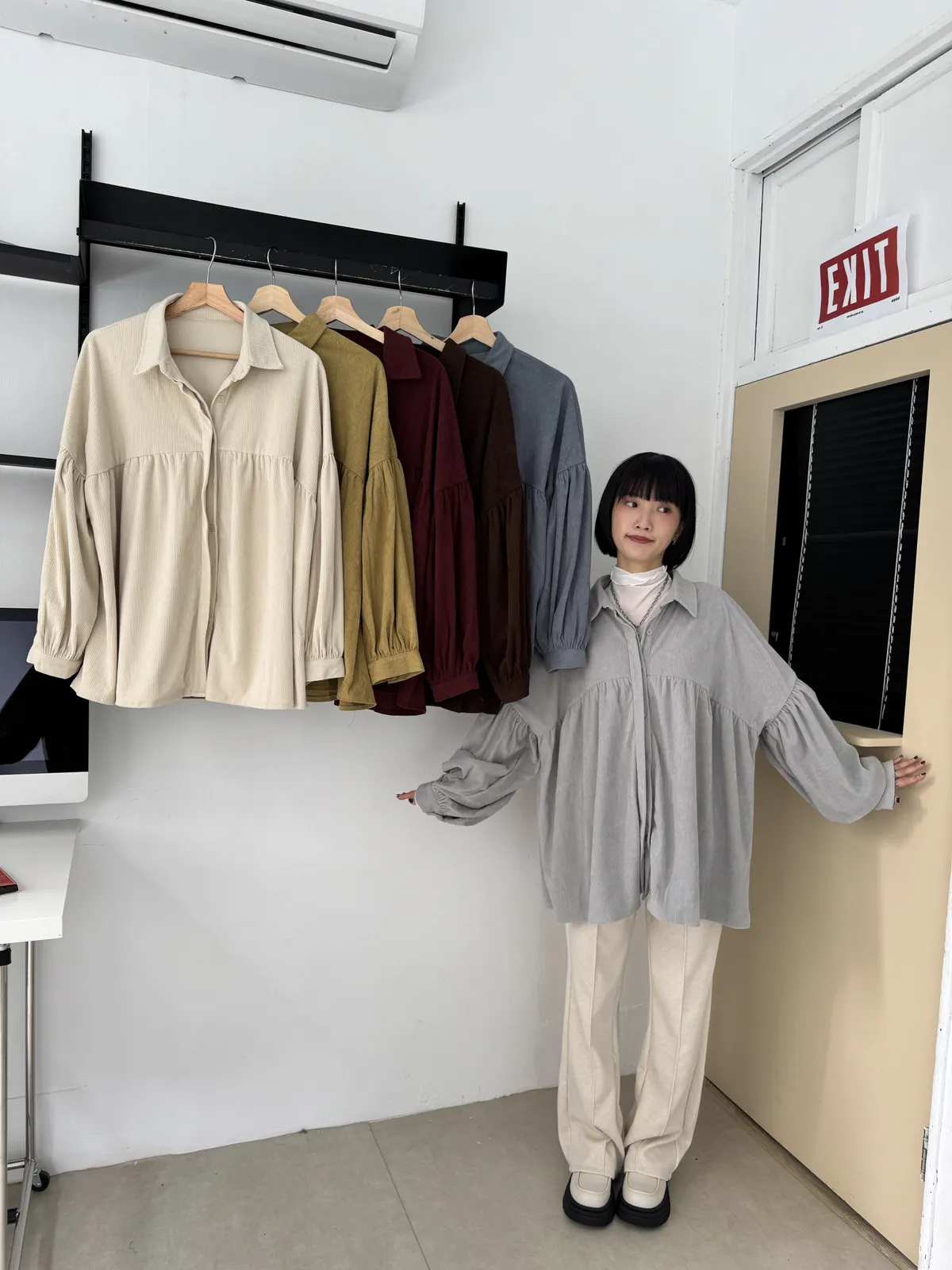 日系感燈芯絨澎袖襯衫 6colors