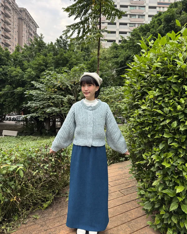 日系坑紋絨布後開衩長裙 4colors