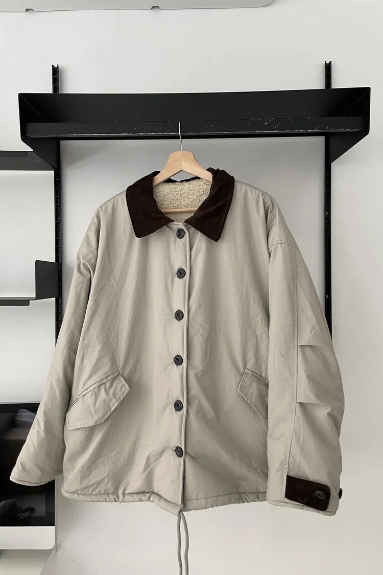 私心大推!燈芯絨拼色翻領厚實羊羔毛外套