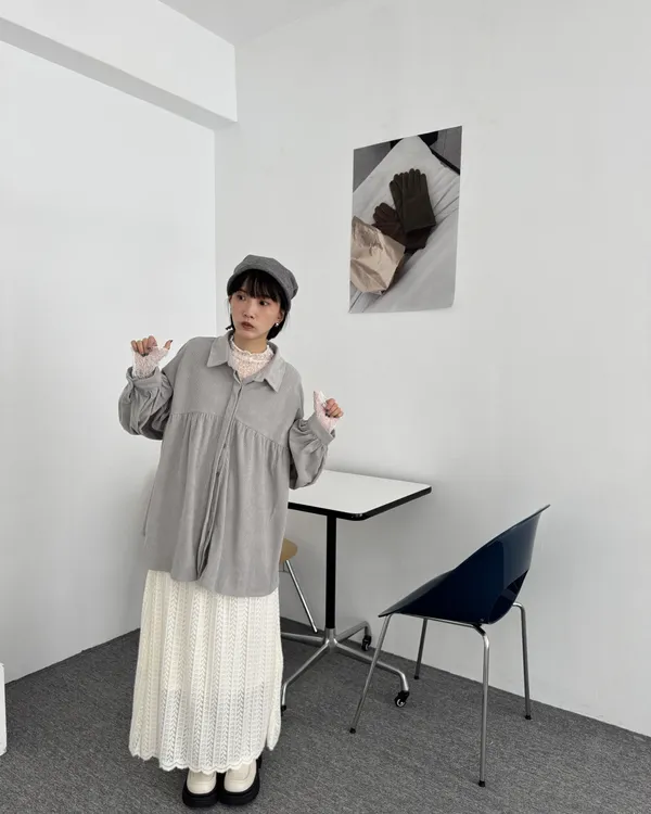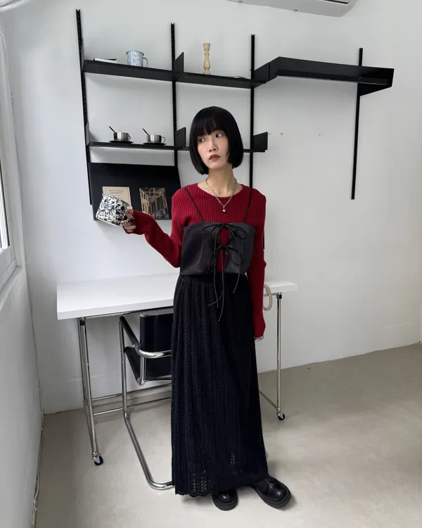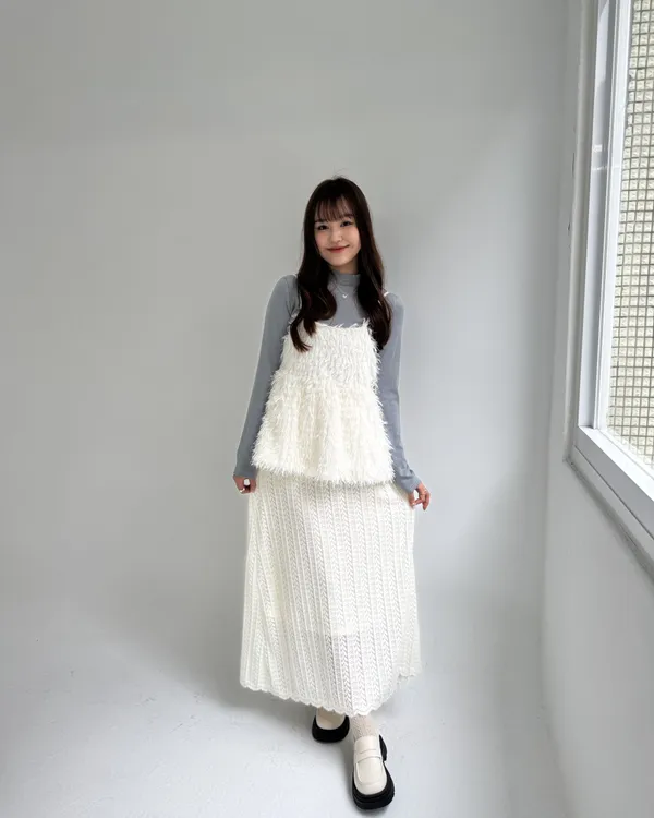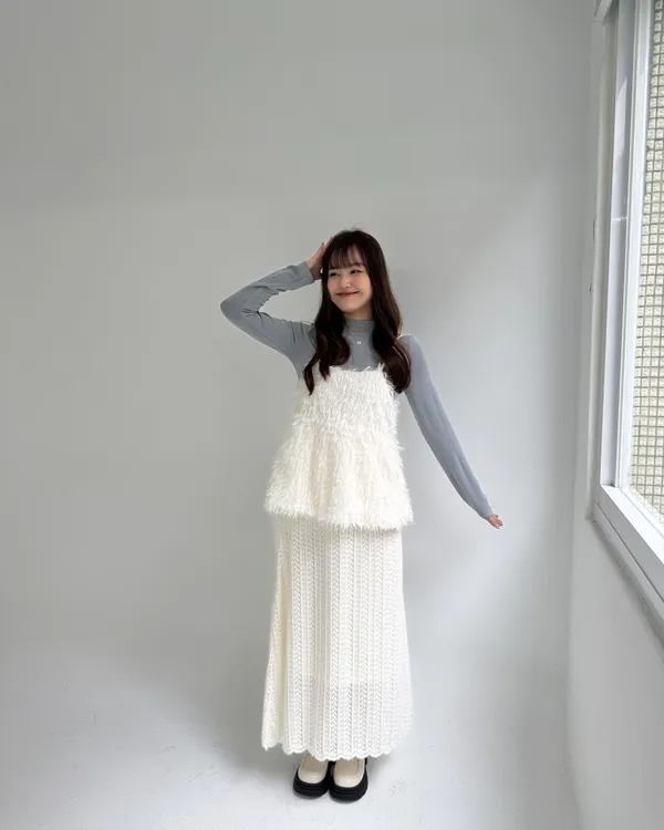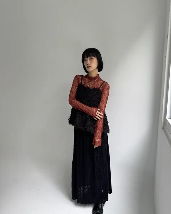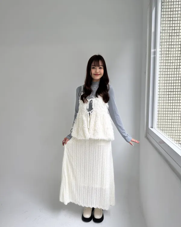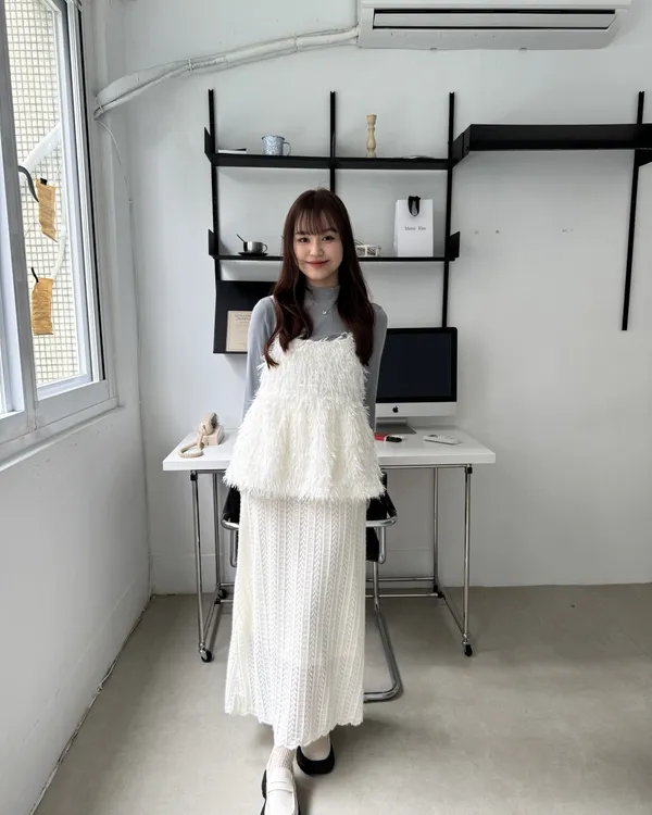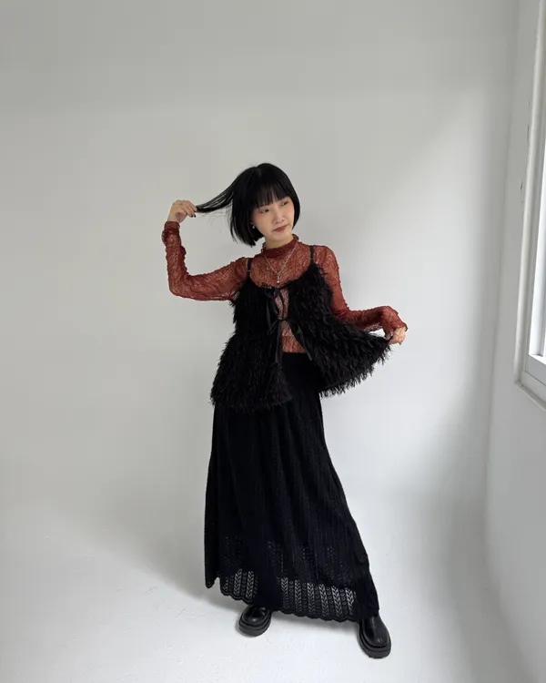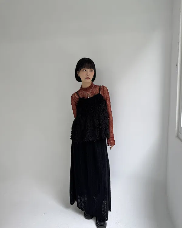 毛絨感蕾絲緹花長裙 2colors