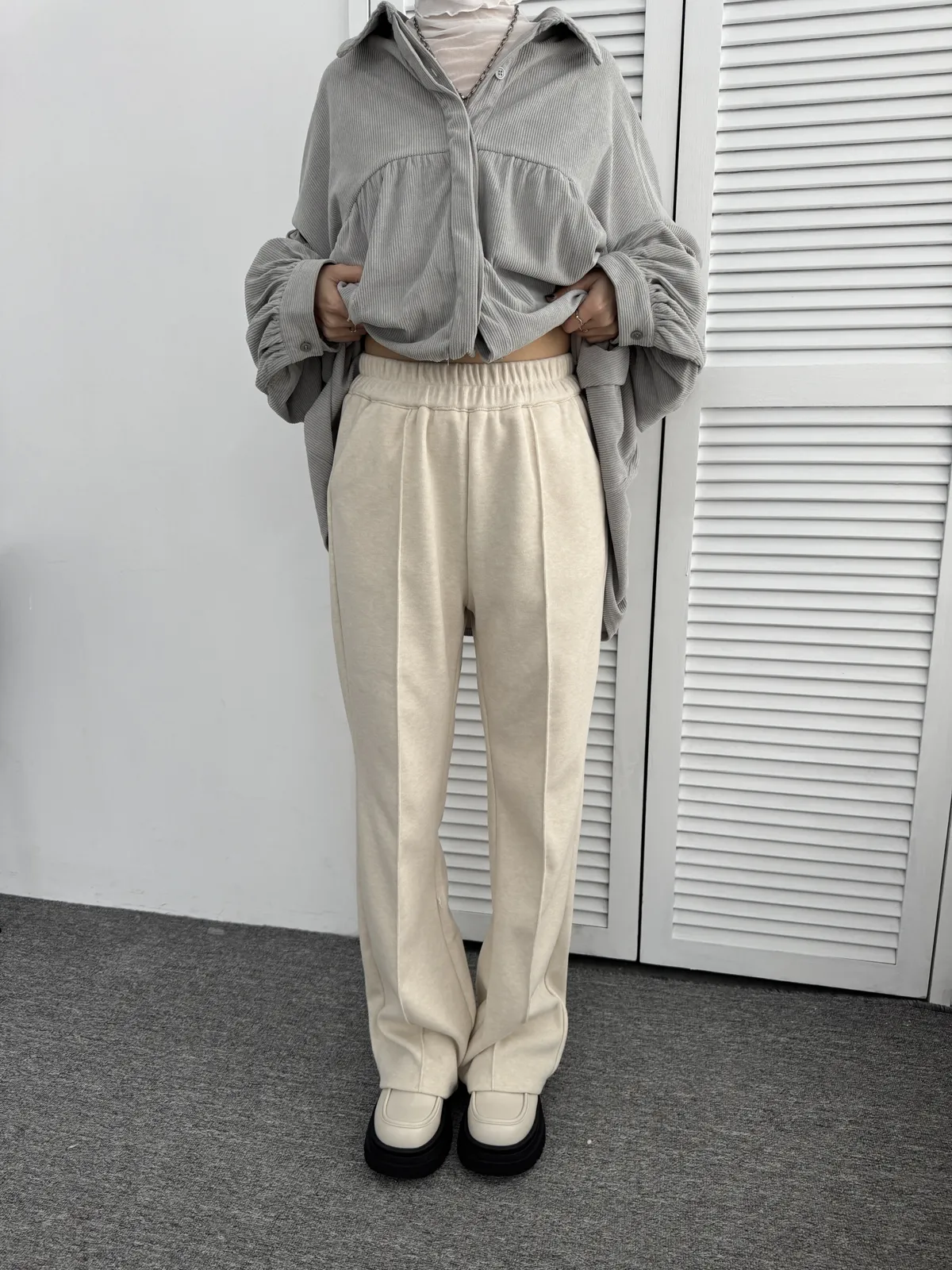 羊絨中車線微喇叭長褲