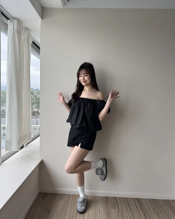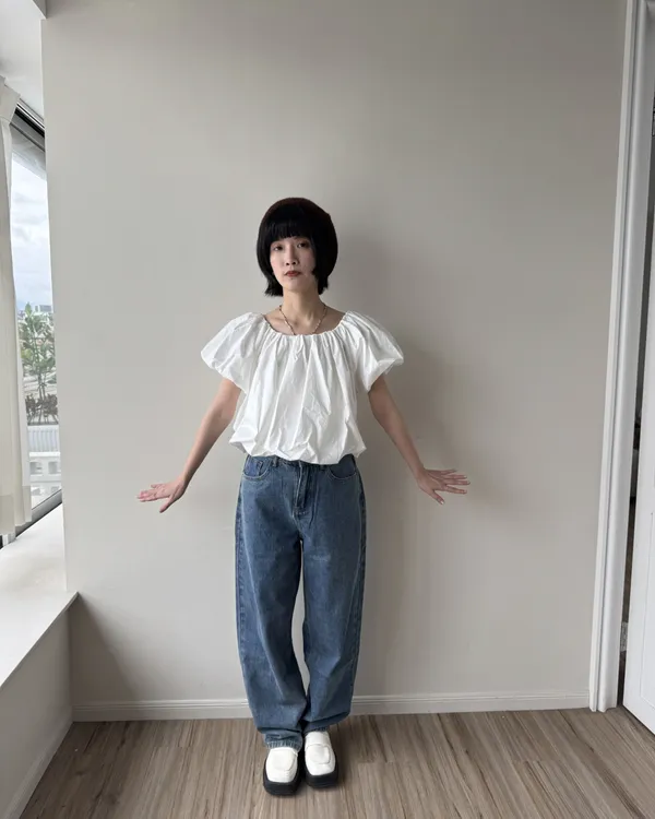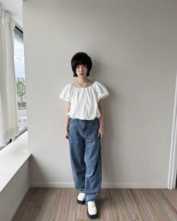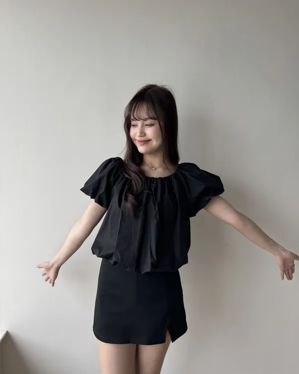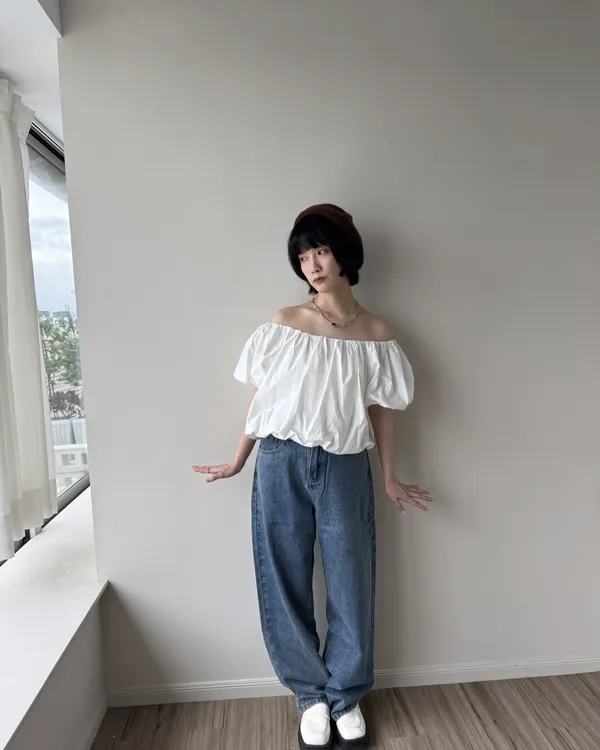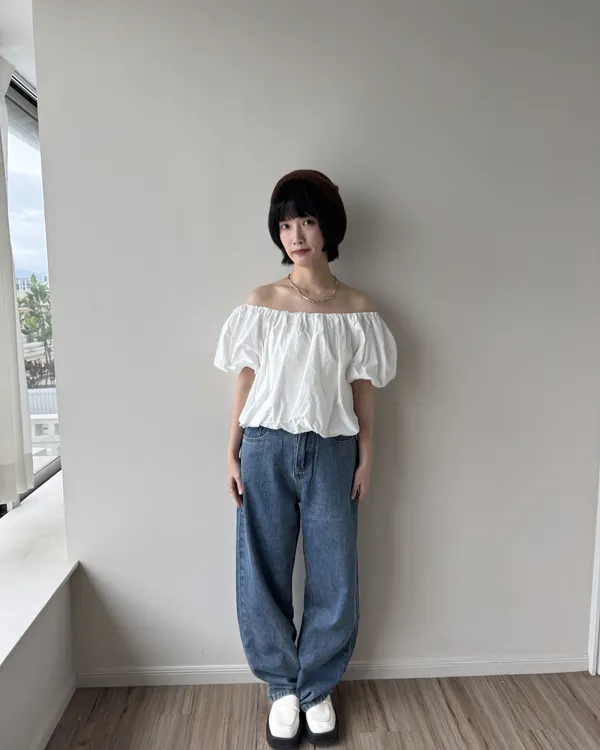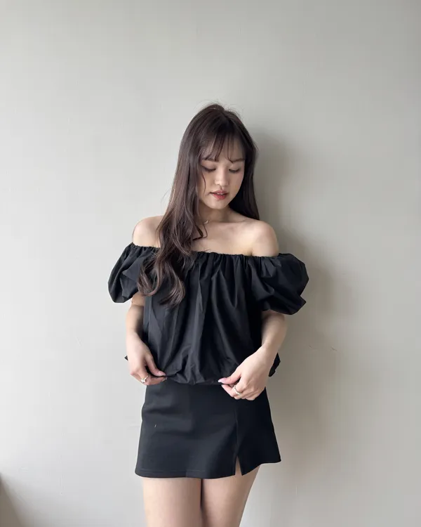 2WAY 雲朵澎澎袖一字領露肩上衣 2colors