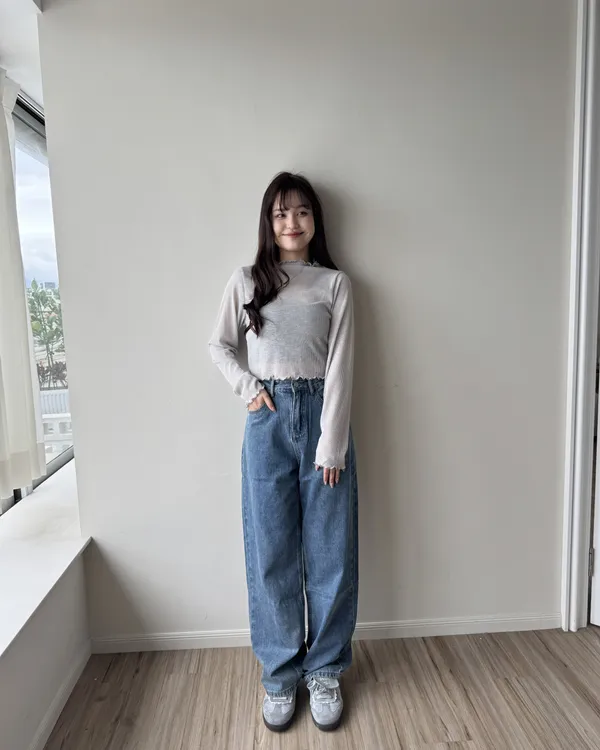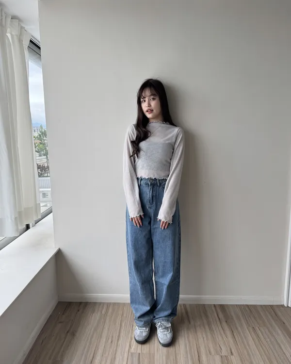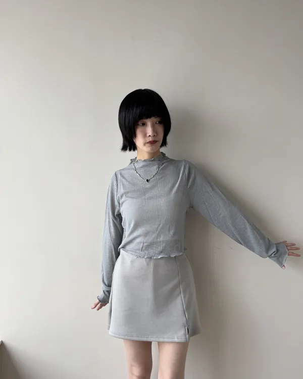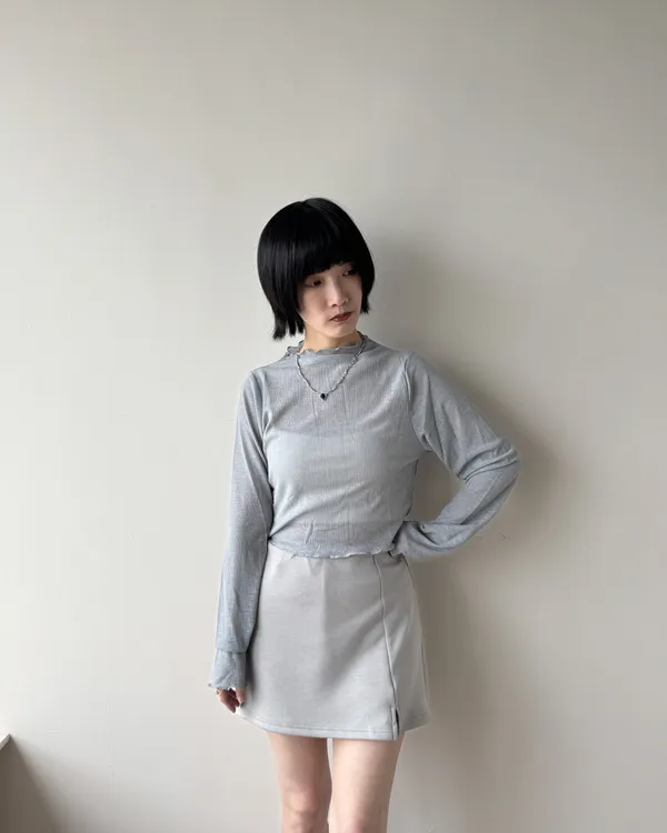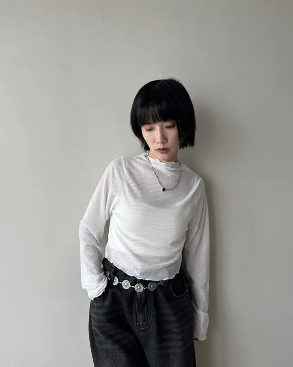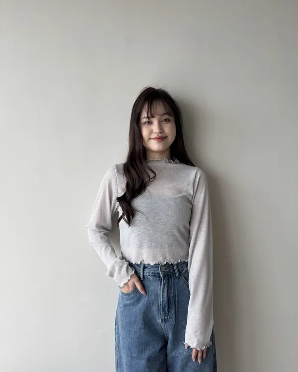 坑條捲邊微透膚上衣 4colors