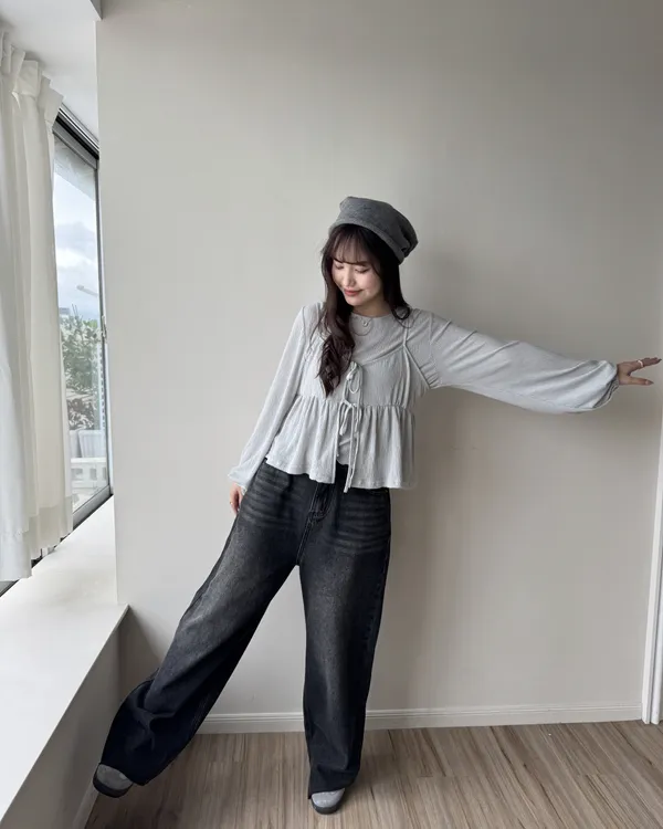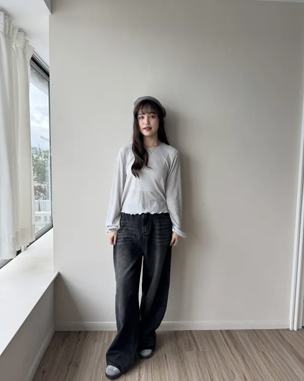 假跨寬消失後鬆緊水洗牛仔寬褲 2colors