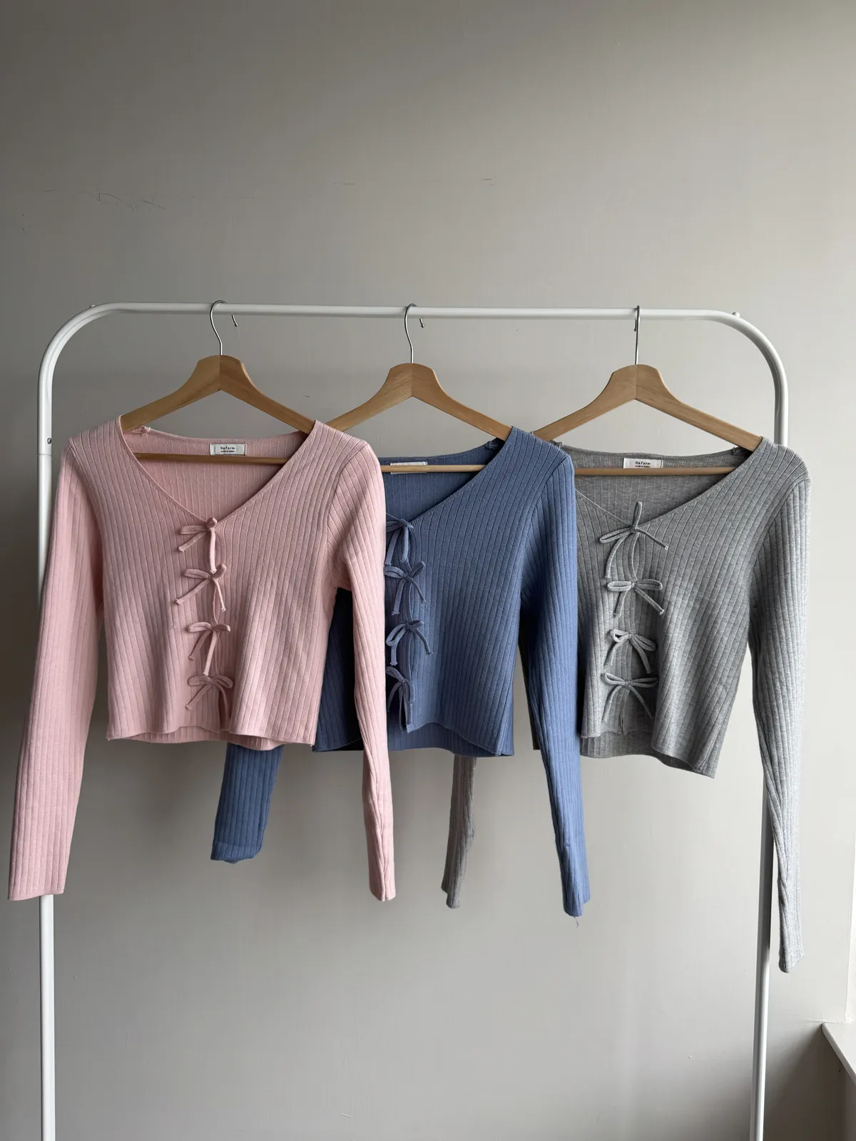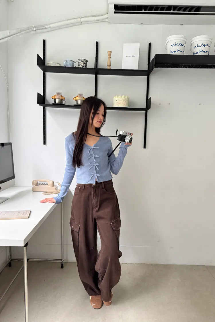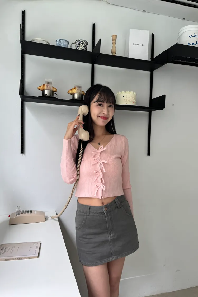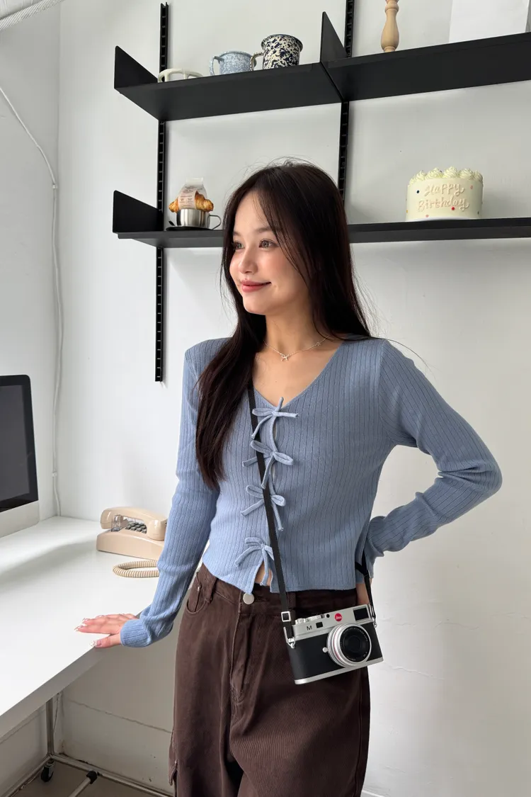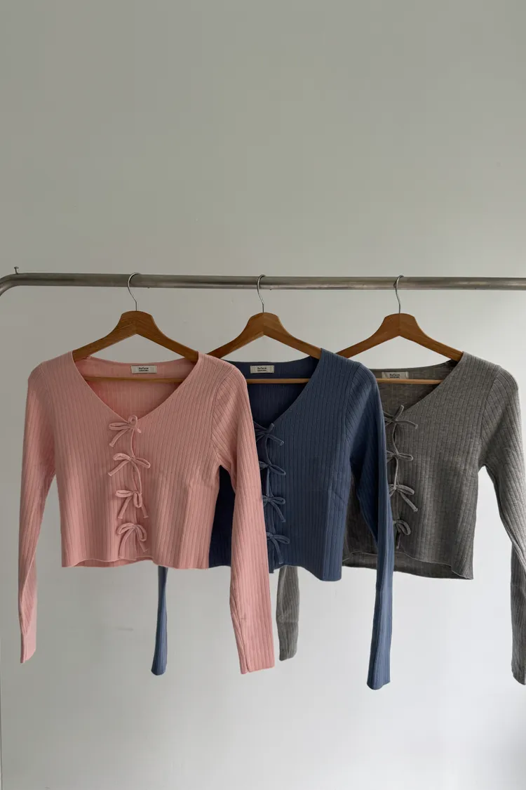 蝴蝶結排釦親膚彈性針織上衣 3colors