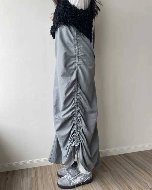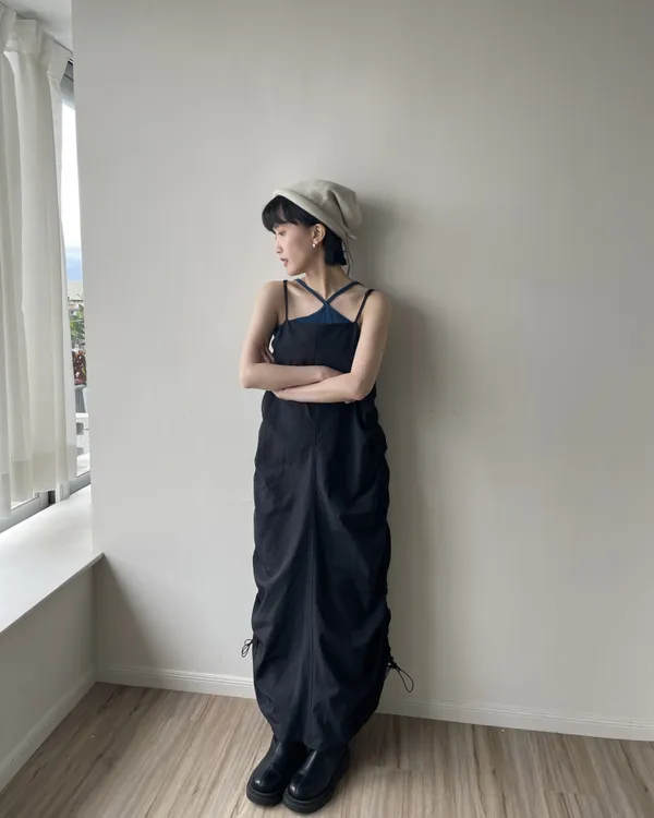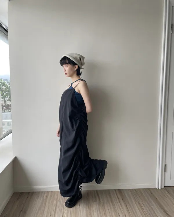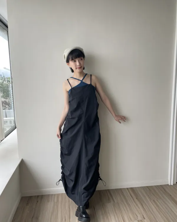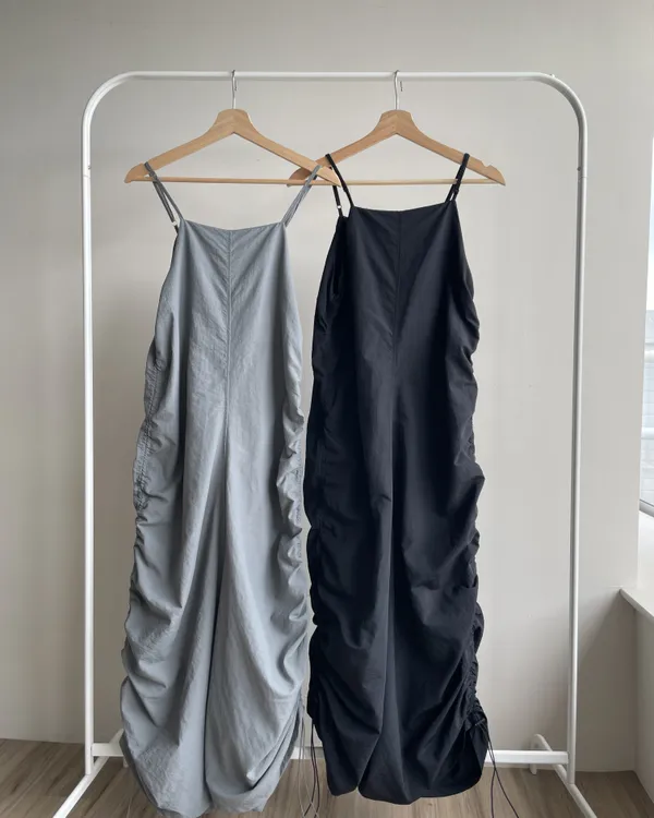 側抽繩抓皺長洋裝 2colors