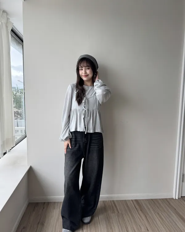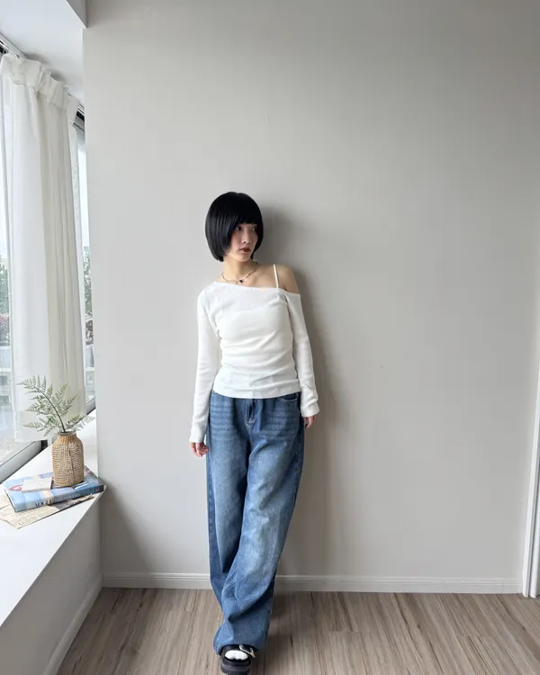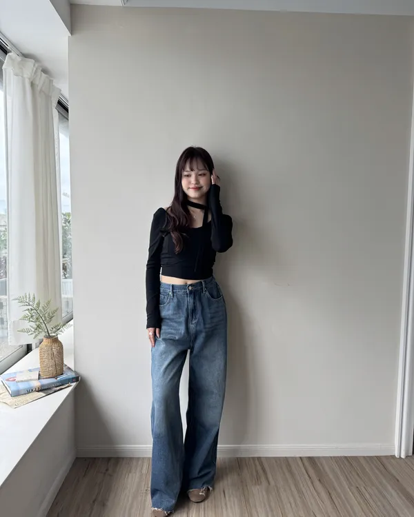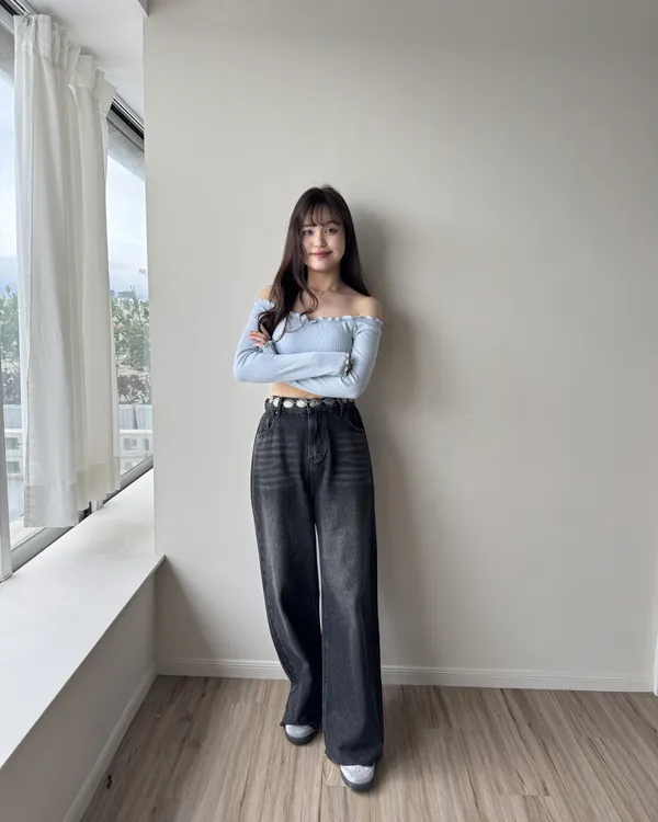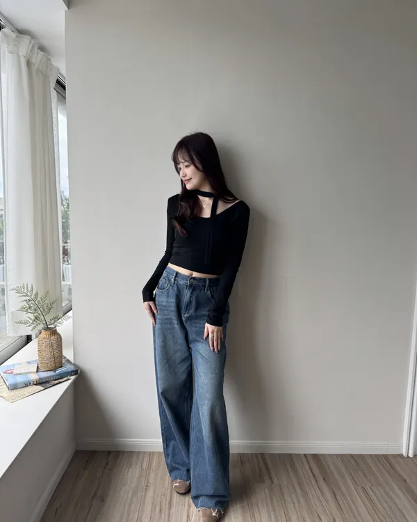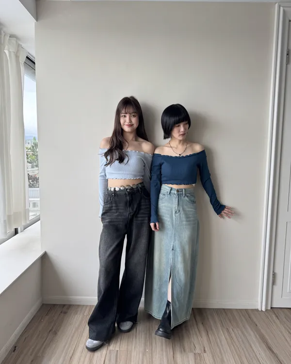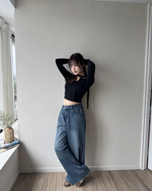 假跨寬消失後鬆緊水洗牛仔寬褲 2colors