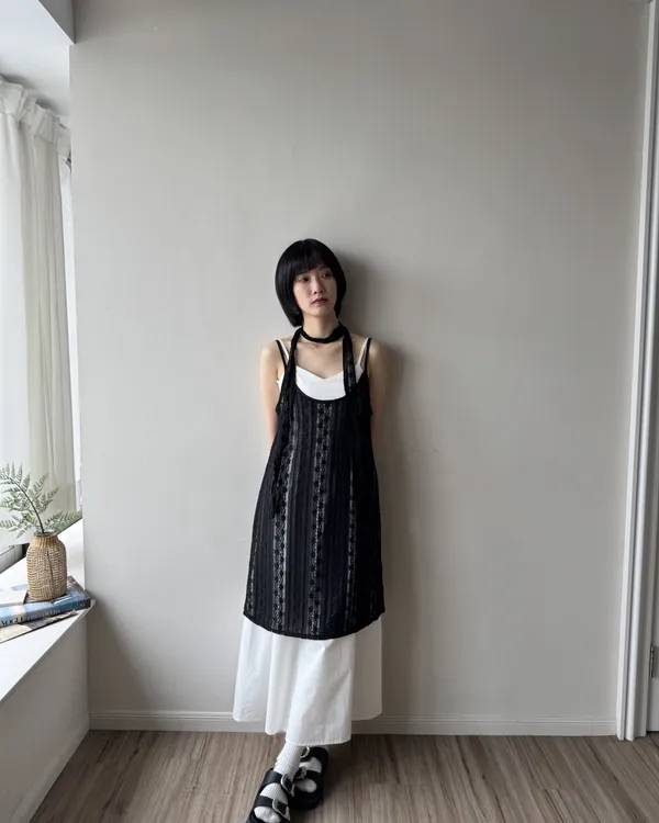 細緻親膚蕾絲罩衫洋裝 2colors