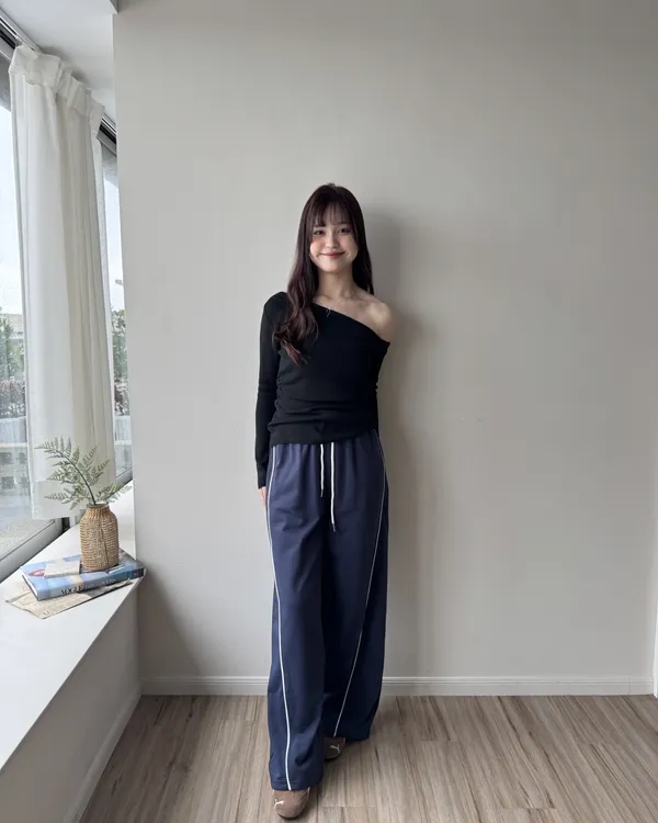 斜肩抓皺收腰針織上衣 4colors