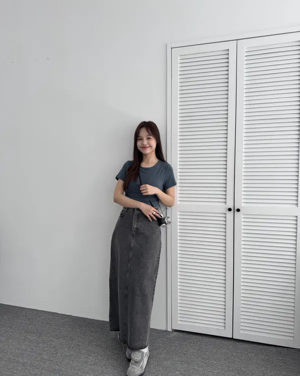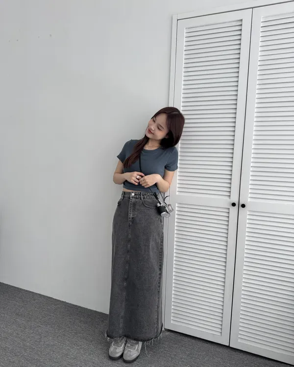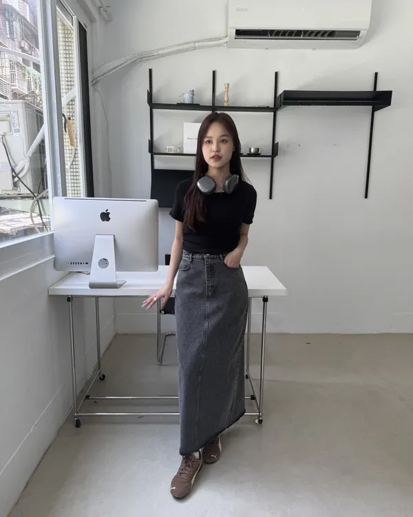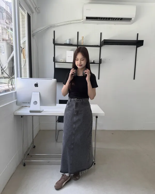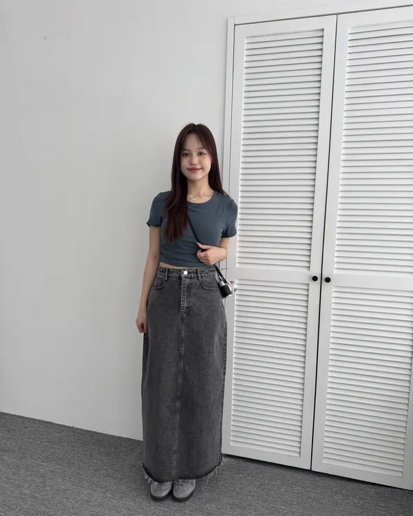 水洗後黑開衩牛仔長裙