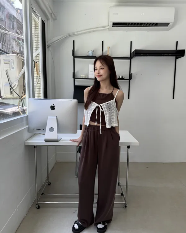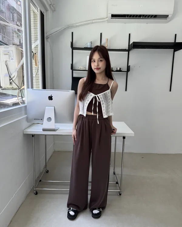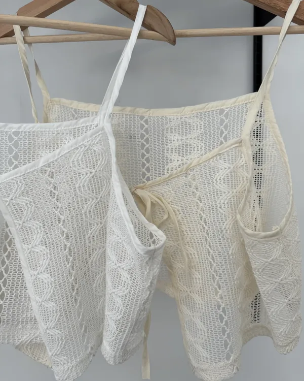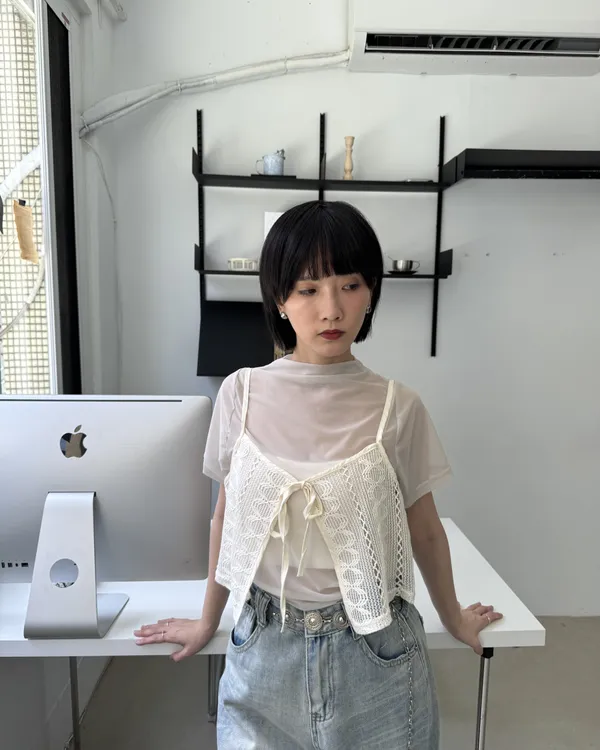 ∞緹花蕾絲短版綁帶背心 2colors