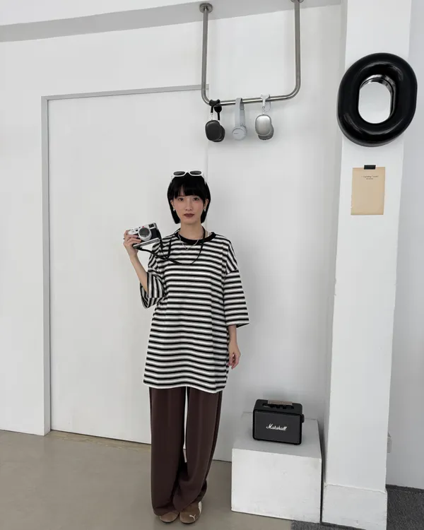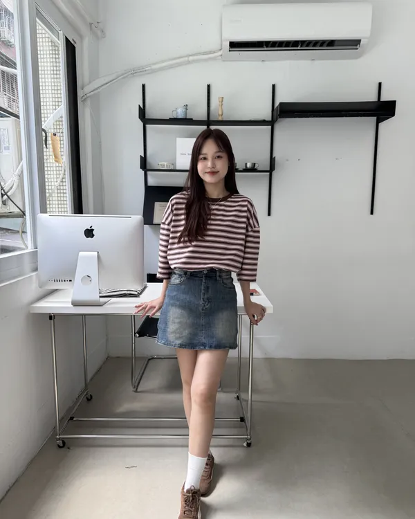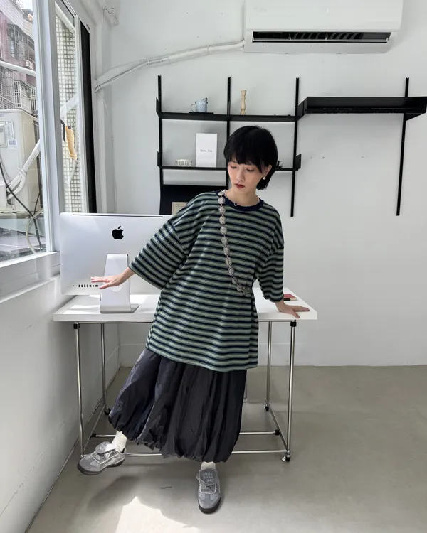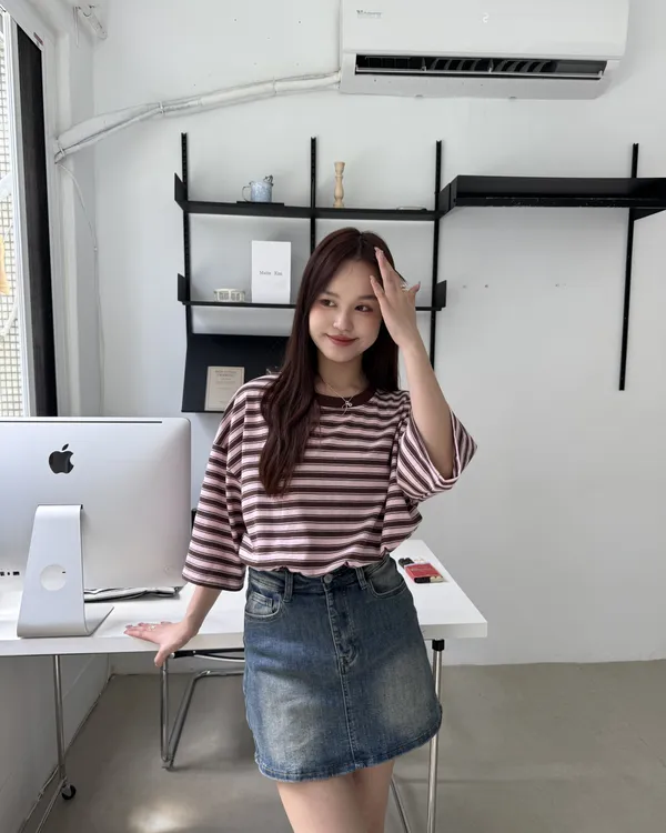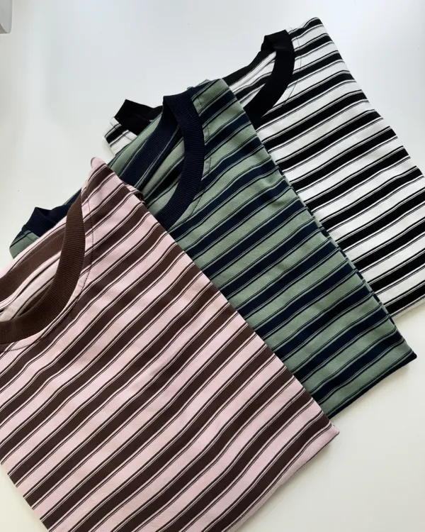 男女共穿!撞色條紋短Tee 3colora