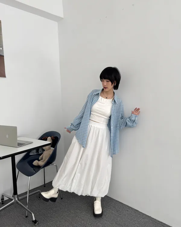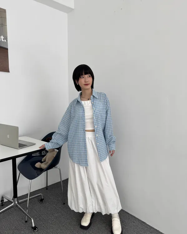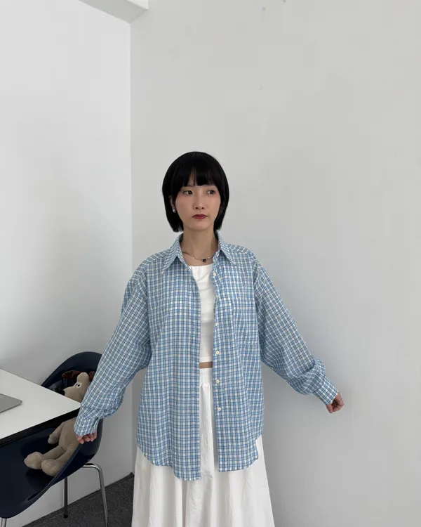 輕薄細格紋襯衫 3colors