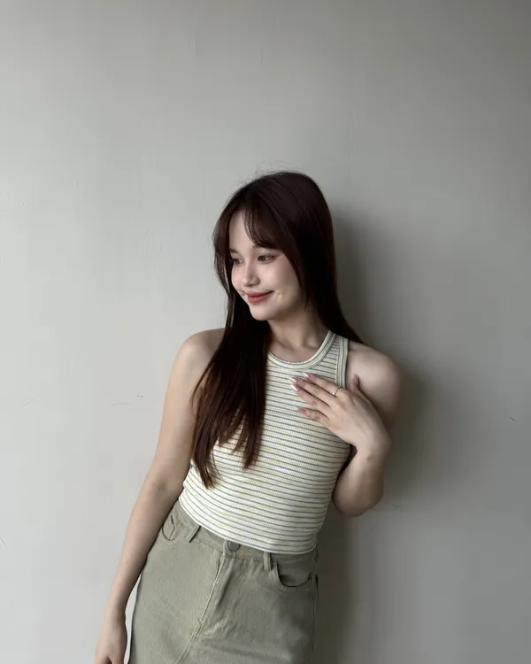 夏日渲染條紋削肩背心 3colors
