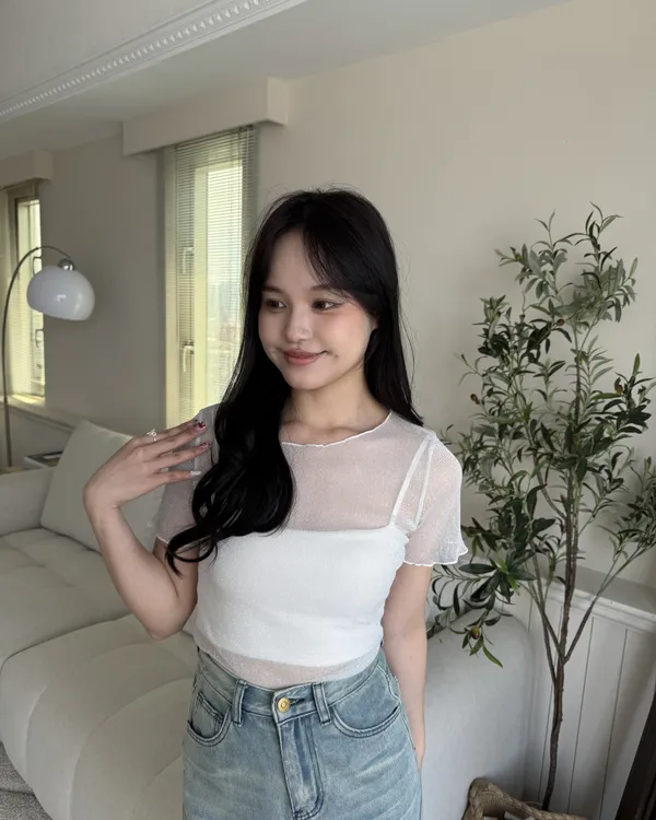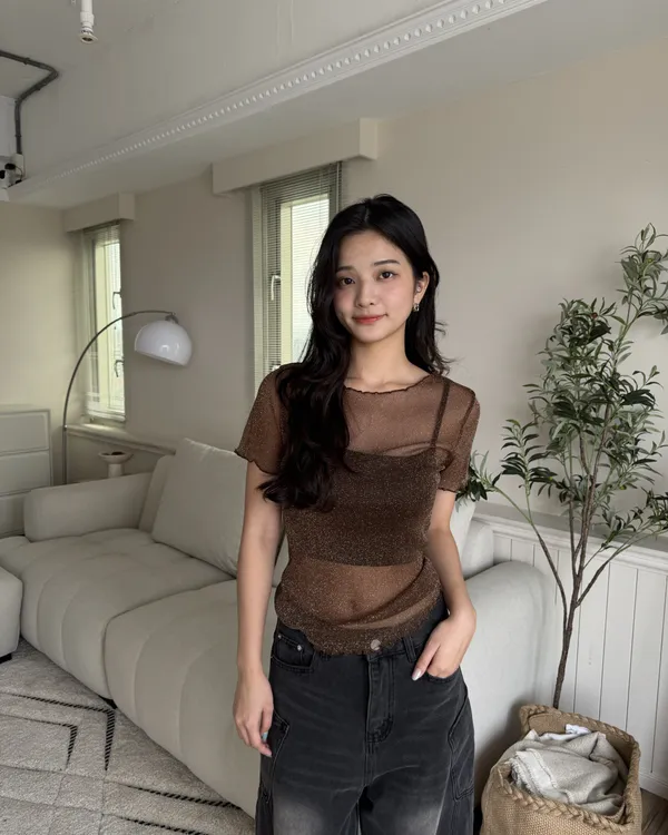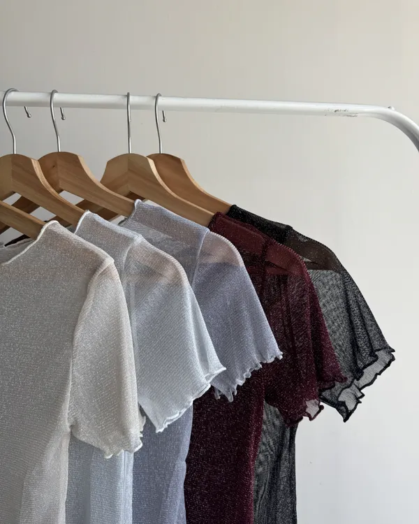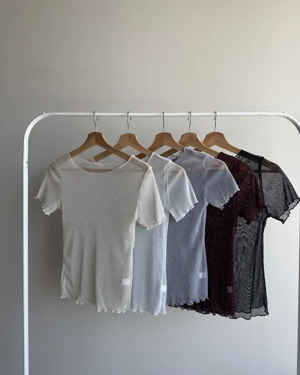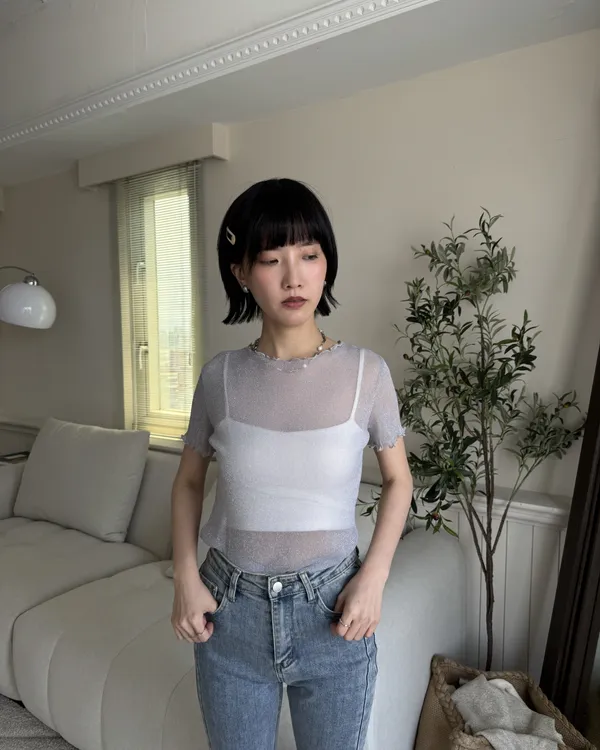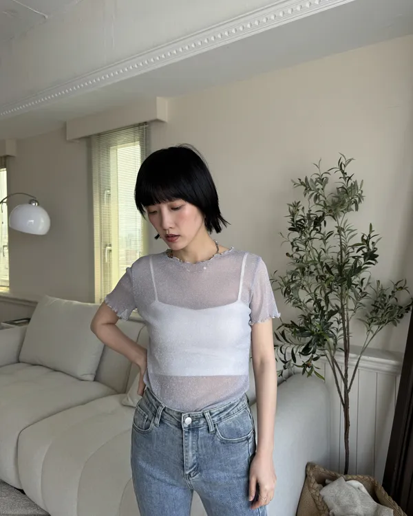 波光粼粼✨細閃木耳邊透膚上衣 6colors